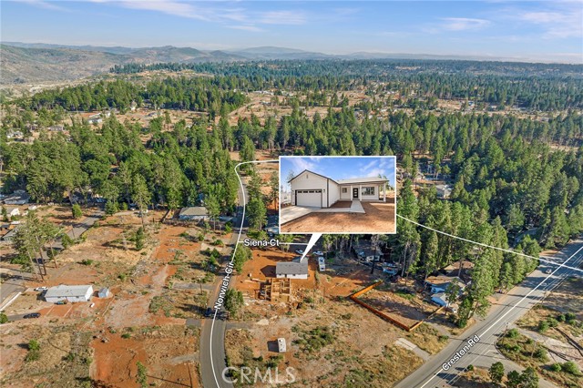 NEW CONSTRUCTION!! Step into this light & airy cottage-style home full of modern elegance that seamlessly intertwines with the essence of comfortable mountain living with 1,283 sq.ft. of intelligently designed space. This home offers 3 bedrooms, 2 baths, laundry room & attached 2-car garage, all resting upon a generous .25-acre lot. As you enter you will see that the spacious living area with vaulted ceilings and lots of picture windows flood the home with natural light and peaceful views to the towering pines. It exudes warmth with its electric fireplace, setting the stage for cozy evenings spent with loved ones or quiet enjoyment. For the culinary enthusiast, the kitchen is a haven of delights, featuring beautiful quartz counters, a fabulous kitchen island with seating space and top-tier black stainless steel Samsung appliances that effortlessly merge style and functionality. These sleek, cutting-edge appliances redefine your cooking experience, elevating it to new heights. Luxury and sophistication reign in the bathrooms, equipped with high end toilets and faucets. The guest rooms have easy access to the guest bathroom with a full tub/shower featuring beautiful quartz counters and shower surround with attractive tile accents. Even the garage is thoughtfully designed with an 8-foot roll-up door and attractively sealed concrete floors, access directly into the laundry/mud room for convenient access plus a tankless water heater for ultimate energy efficiency! Conveniently located less than a mile from grocery stores, numerous shopping options, the post office, and dining establishments, this location offers unrivaled accessibility. Additionally, a quick drive down Skyway will lead you to Paradise and Chico for an easy commute as well as opening doors to a world of outdoor adventures, including fishing, water sports, and more. This property is just a short distance from Paradise Lake, DeSabla Lake, Lake Oroville Marina, and the Feather River, providing you with endless recreational opportunities. Also, as a member of the Paradise Pines Property Owners Association, you’ll have access to a clubhouse featuring meeting rooms and a library, as well as two event centers with full kitchens. Additional amenities include tennis courts, a bocce ball court, a children’s playground, hiking trails, a swimming pool, a spa, and much more!