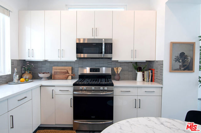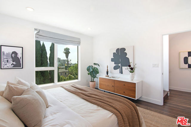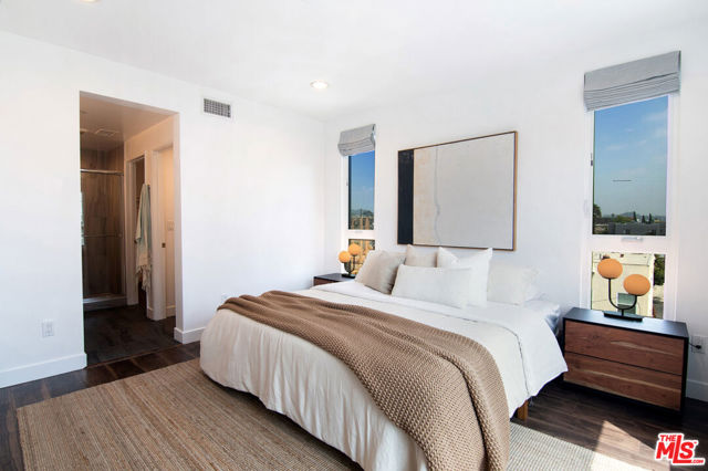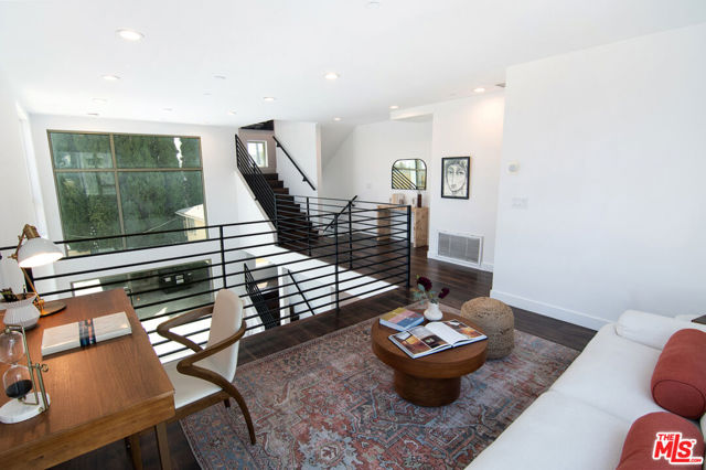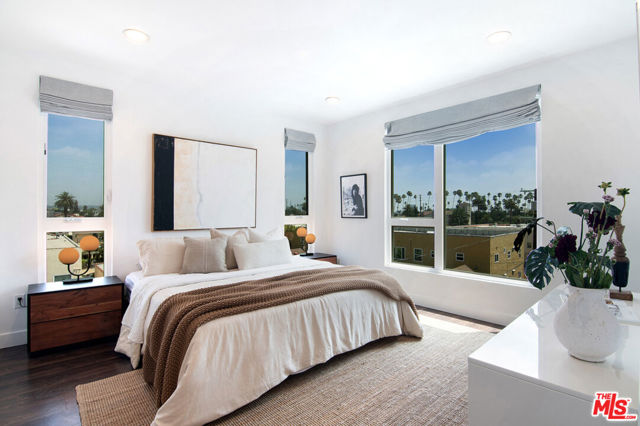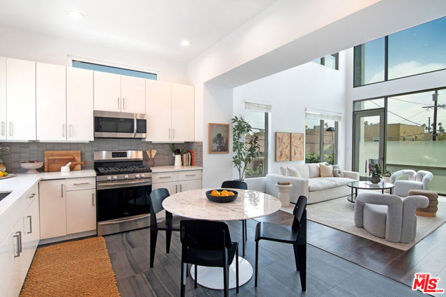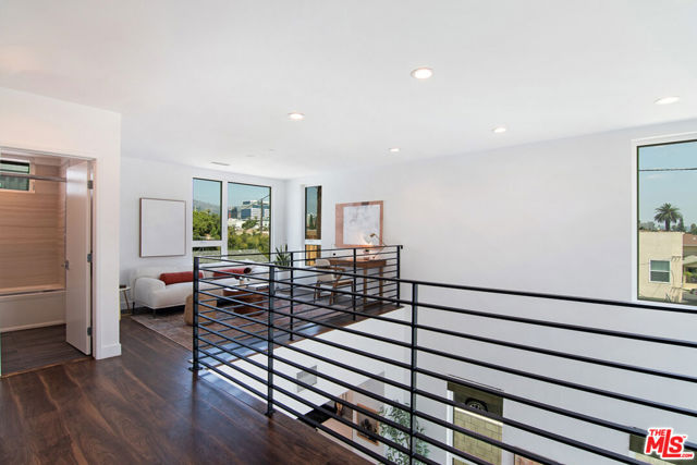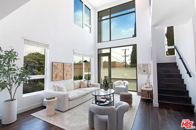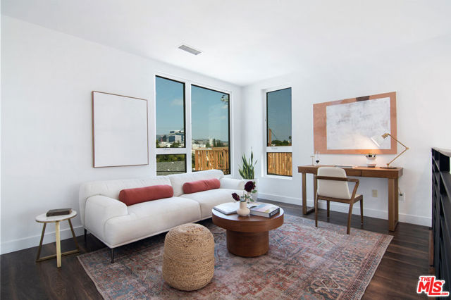 Relax, entertain, and perfect your next dinner party in this sun-splashed corner-unit townhouse featuring chic modern design and private outdoor space in the Hollywood Studio District. Spanning 1942SF across four levels culminating in a spectacular roof deck, this exceptional home welcomes you with an attached two-car garage and a secondary suite perfect for guests. You’ll love hosting lively gatherings on the soaring double-height second level, where a large living room opens to a balcony. A powder room and an open eat-in kitchen with stainless steel appliances and a walk-in pantry complete the level. Above, the third-floor mezzanine is ideal as a sunny home office or den and has its own bath. On the top floor, discover a luxurious primary suite with a massive walk-in closet and spa bathroom, plus a secondary bedroom with ensuite bath and an in-unit washer-dryer. Head to the roof deck for glorious views from the Hollywood Sign to Downtown LA. This is a rare offering in a boutique building, excellently located near all the excitement that Hollywood has to offer.