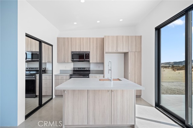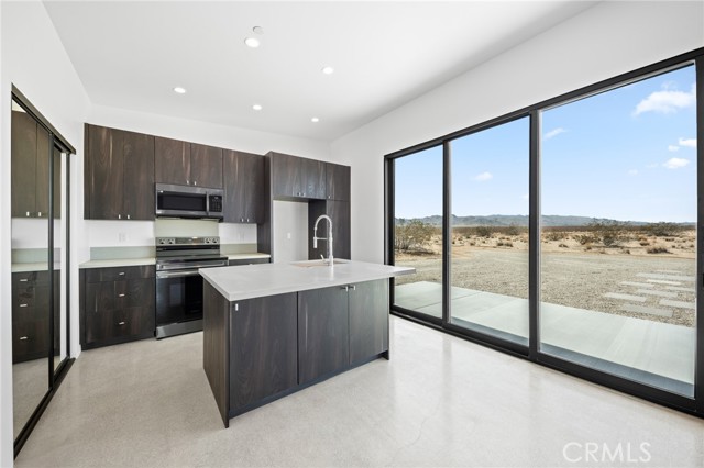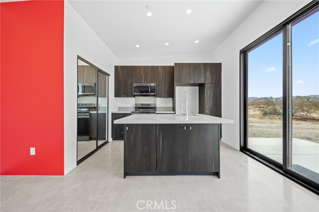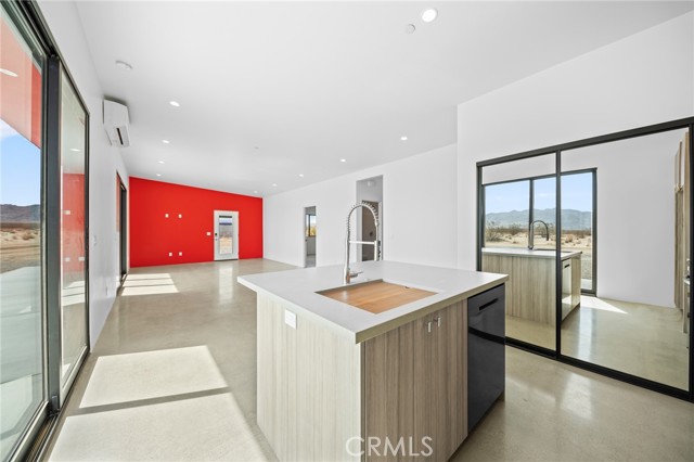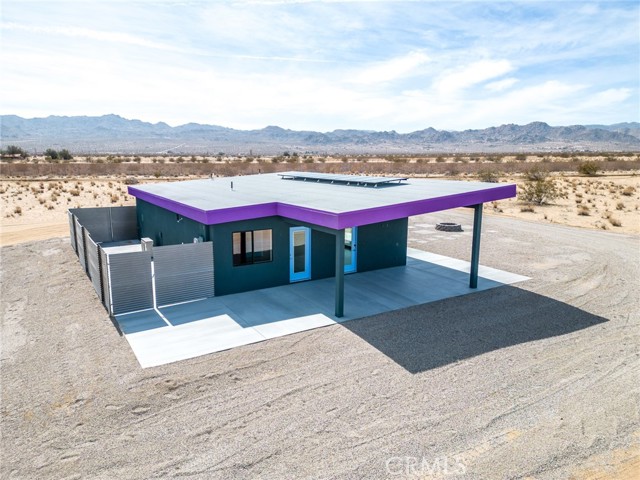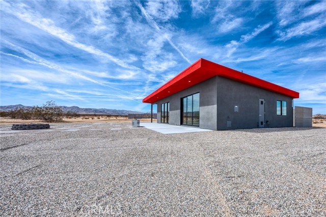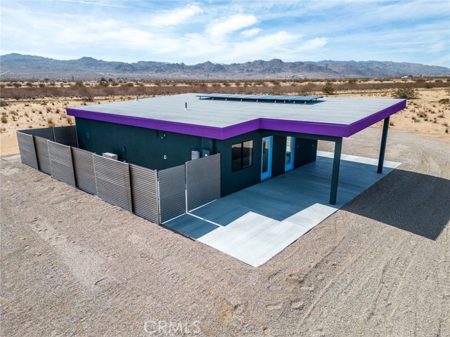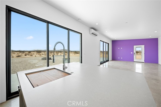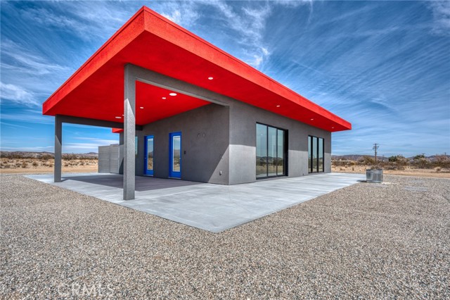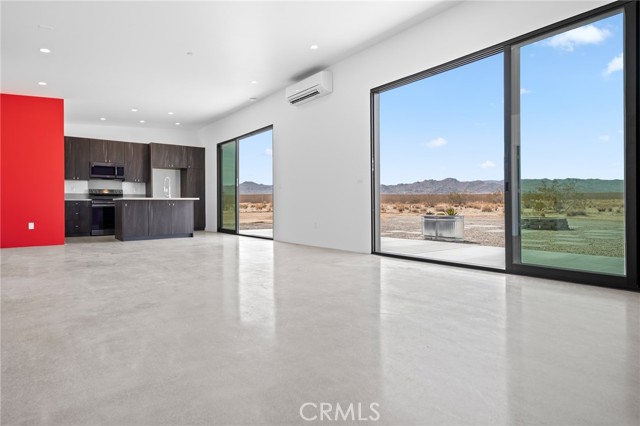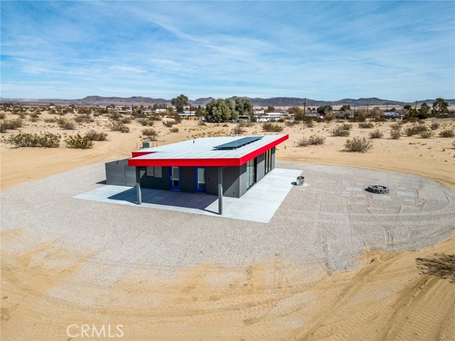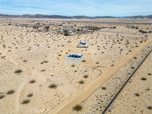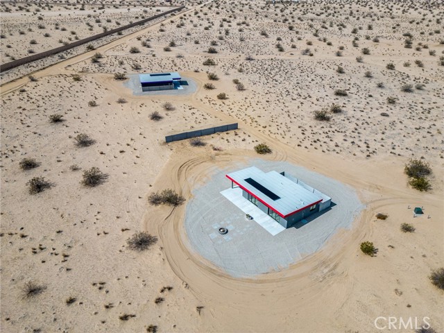 New Construction, Two Modern Homes on massive 8.77 acres! Each home has their own street address and access 64793 Walpi and 64726 4th street in the sunfair area of Joshua Tree, each home is 2 bedrooms 1 bath with an outdoor shower on the back porch. Features include, tall open glass sliding doors, high angled ceilings with open living concept custom cabinets, polished concrete floors, ruvati kitchen sinks, indoor laundry room, Samsung appliances, smooth drywall finish, recessed lighting, prewiring for alarm/video and surround sound, homes are equipped with tri zone mini splits, modern plumbing fixtures and ceiling fans in the bedrooms. The master bedrooms have their own access to the outdoor patio and porch and the views from these homes are AMAZING. The homes are fed with underground power, have EV charge stations and each have their own power meter with paid for solar systems! Tankless water heaters and upgraded insulation make these homes utility bills very manageable. There is plenty of room for the RVS plus extra parking the possibilities for this property are endless! Just a short drive to downtown JT or the main park entrance and just down the street from the JT Music festival grounds at Joshua Tree Lake and the famous ‘Transmission’ art Sculpture by Daniel Popper! Homes are just finished and ready for move in now make this one-of-a-kind property yours today!
