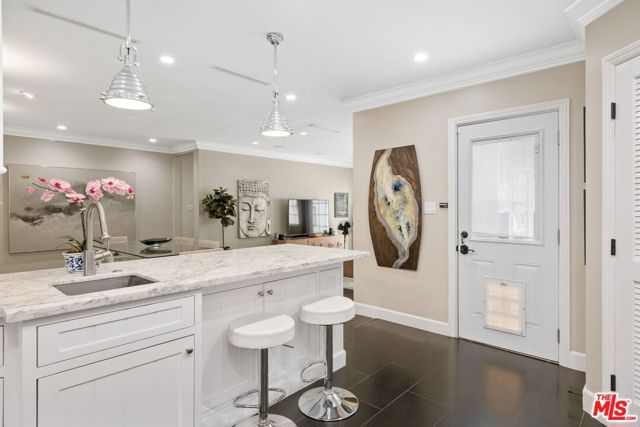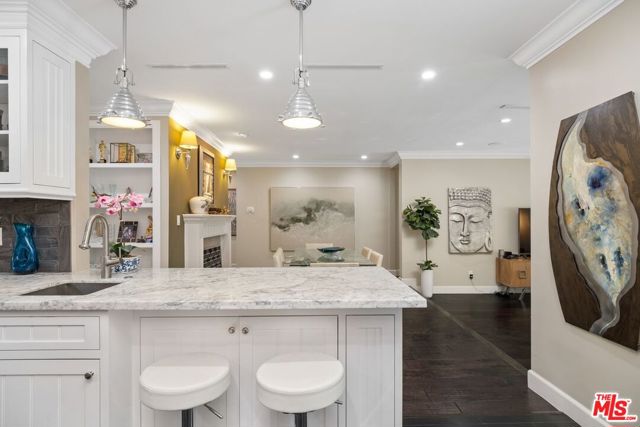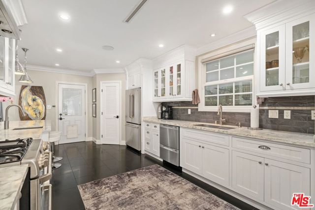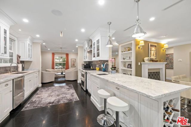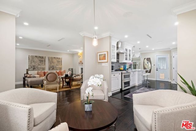 Sophistication and luxury await you in this spectacular modern home! You can look near and far, and you won’t find a home with the grace, style, and warmth that this beauty offers! As you enter the home, you are greeted in style as you walk into the intimate living room, complete with a fireplace, offering the perfect spot for drinks before dinner with friends or relaxing with a good book! Preparing meals in the gourmet kitchen, which is adorned with Carrera marble counter tops, stainless steel appliances, a cook’s oven, and beautiful cabinets, is enjoyable and relaxing! The breakfast bar in the kitchen opens to the dining area and family room, which allows for ease of mingling with guests while cooking. The large primary bedroom has a built-in desk, which makes for a lovely workspace, as well as access to the patio. The spa-like primary bathroom is adorned with Carrera marble and offers a large bathtub with jets so you can relax and unwind! The second bedroom is an en suite, allowing privacy for guests. The third bedroom is light and bright! Enjoy the ease of the indoor/outdoor flow, through the sliding glass doors to the patio and the Shangri-La atmosphere of the architect designed backyard, where you will find the outdoor kitchen with a BBQ, sink, and refrigerator, dining pergola, swing bed, and dual waterfalls – a true sanctuary in which to relax and recharge! Some notable features this lovely home has to offer: crown molding, engineered wood flooring, dual pane windows, Rachio auto sensor drip watering system for the entire landscaping, built-in sound speakers in common areas of the house, and a 2-car detached garage, as well, as a car port.