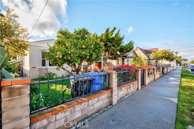 Great duplex in the City of Wilmington! A single-story home, 3 car garage and apartment above the garages! The front traditional California Bungalow styled home, offers a 2-bedroom 1 bathroom. The home has a traditional porch entrance, with a large fully fenced front yard, fruit trees and turf. The living room has a cozy fireplace and dark laminated floors, large windows for tons of natural light. The dining room has dark laminated floors with lots of windows for natural light. The kitchen has plenty of well-kept cabinets and tile floors. The bedrooms are a great size with plenty of closet space. The large bathroom has a separate shower and bathtub. This home has a laundry area inside, ready with washer and dryer hookups. The back building consists of a large apartment above the 3-car garage. The apartment has a large living room with laminated floors and lots of windows. The family kitchen is large, with original cabinets and space for a dining table. The bedrooms are a large size with plenty of closet space. The bathroom has a shower/bathtub combo with tile floors. The three-car garage has individual garage doors, washer and dryer hookups, and the possibility to be converted to an ADU! The back has a sliding metal gate, plenty of parking space for up to 3 cars. Both buildings are connected by a patio/deck with a courtyard in between, enough to add privacy to both units and also plenty space for both units to have private gatherings. The property is located near and schools, shopping centers, public transportation and freeways, and about 10 minutes to the Port of Los Angeles, historical sites, parks, the beach, and it is about 10-minute drive to night life in Downtown Long Beach and family amenities nearby.