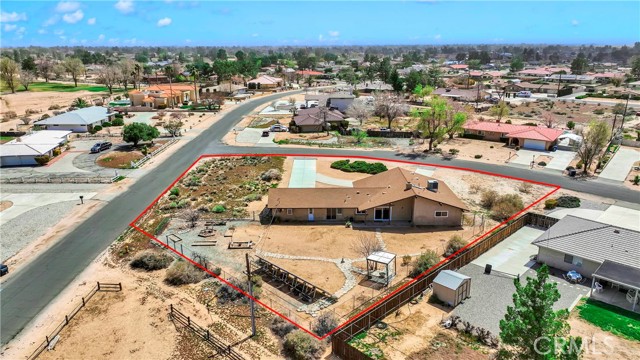 ***NEW PRICE! This beautiful home is located on a spacious corner lot with a circular driveway and features a PAID OFF solar system and has had only one owner! Located in the desirable area of the Apple Valley Golf Course. This property has a fenced backyard which is a great space to enjoy time with your loved ones in addition to a huge side yard to store RV’s. Upon entering this home you are in the grand foyer and just off to the right is the formal living room; bright with natural light from the large front facing window. It features a gorgeous wood panel and beamed ceiling that you will love! Moving into the family room with its raised hearth brick fireplace, energy efficient solar tube light and gorgeous wood flooring. The kitchen is open to the family room and large dining area. It has a long breakfast bar, built-in Wolf brand 5 burner range & hood, KitchenAid Convection Microwave and Oven and newer LG dishwasher. Down the hallway there are 4 spacious bedrooms including the primary suite with 2 mirrored closets and a connected bathroom. The primary bathroom includes a vanity counter area and shower in tub combo as well as a separate entrance to the backyard. The hall bathroom includes a shower in tub combo and plenty of wood cabinets for storage. The laundry area is in the finished bonus room (add’l 258 sq ft.) There are many updates & upgrades and the list can be requested at any time. Some of these are; new double pane Anlin vinyl windows in 2016, new septic system in 2020, new water heater 2021, just to name a few. Make this one a priority to see right away!
