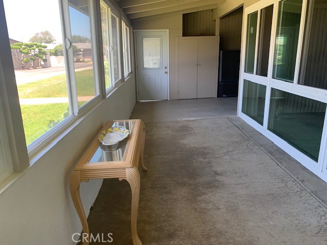 This 2 bedroom 1 bath Home is so Unique as has a recently new Enclosed patio with with Acrylic UV Windows and includes 400 SQFT of Extra living space that can be used as Enclosed Patio with storage, Dining area, office or den. there are unlimited possibilities so use your imagination. Newer front door that allows entry ,then Security screen door to actual unit, which has double pane windows, Living room and bedrooms have Vinyl plank flooring ,Kitchen has Off white cabinets, built-in appliances, formica counter and Vinyl flooring, bathroom with off white cabinets and vinyl flooring. Living room with Vertical blinds and drapes in bedrooms. There is close guest parking and Laundry nearby and Carport is also close. LEISURE WORLD IS RESORT-LIKE 55+GATED SENIOR COMMUNITY THAT OFFERS SO MANY GREAT AMENITIES. Carport Bldg 96 Space 5
