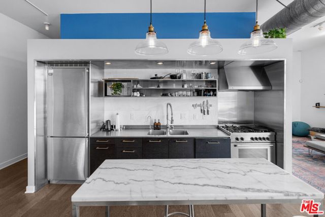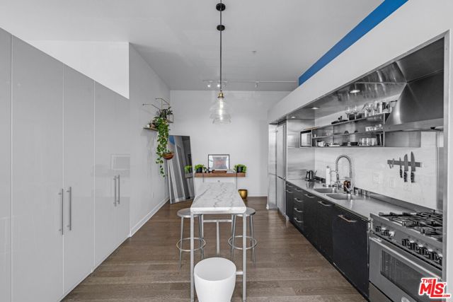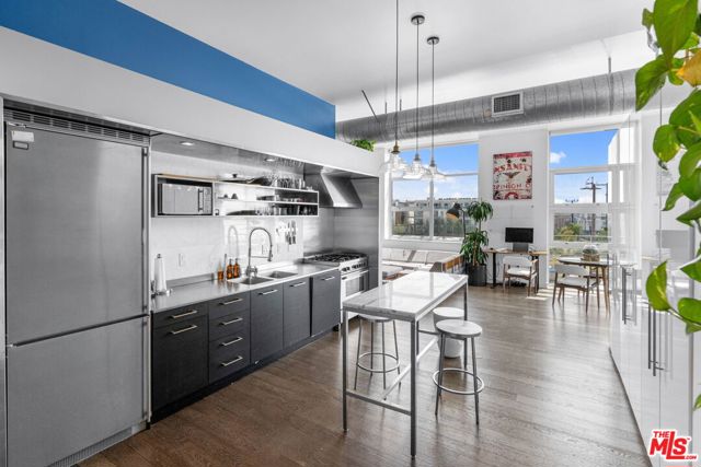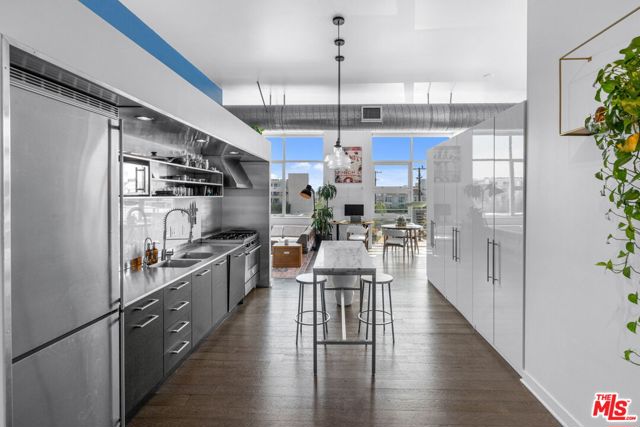 Introducing the stunning Contemporary Industrial Penthouse in the highly sought-after Marina Arts District. With 1 bedroom and 2 baths, this luxurious home unit offers an unparalleled living experience. As soon as you step inside you are greeted by soaring 11-foot ceilings that create an airy and open atmosphere. Floor-to-ceiling windows bathe the space in natural light providing a seamless connection to the breathtaking views outside. The sliding wall system effortlessly blends indoor and outdoor living allowing you to enjoy the unparalleled beauty of your extra-large wrap-around private patio. The ultra-modern kitchen is a chef’s dream, featuring European style cabinetry and top-of-the-line stainless steel appliances. Prepare meals with ease while admiring the sleek and stylish design of the kitchen. Both bathrooms exude sophistication, the primary boasting an oversized soaking tub and a separate shower in the master bath with Watermark polished chrome fixtures. The penny-round floor tiles add a touch of elegance to these already luxurious spaces. This penthouse also offers energy-efficient heating/AC systems, ensuring comfort all year round. Washer and dryer are included for your convenience. Pre-wiring for high-speed broadband and cable TV allows for seamless connectivity throughout the home. A large flat-screen TV provides the ultimate entertainment experience. Outside, a landscaped courtyard awaits complete with an outdoor kitchen, fireplace and BBQ areas. Unwind and relax in the cozy and sedating ambiance created by the fireplace or entertain friends and family in the spacious outdoor kitchen. Two secure parking spaces provide the utmost convenience and peace of mind. Don’t miss your chance to experience contemporary luxury living in the heart of Marina Arts District. Costco, Pavilion’s and other restaurants walking distance. This unit is beautifully designed with a perfect blend of style, comfort and convenience. Also available for lease!