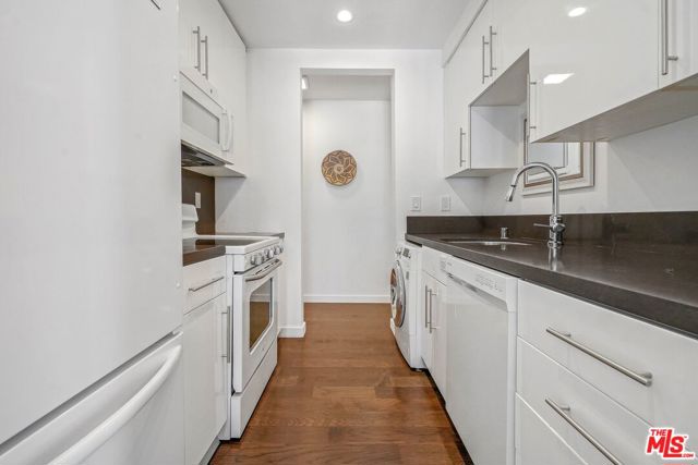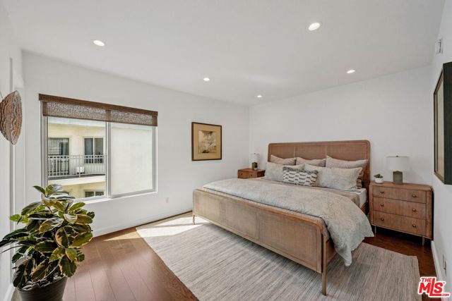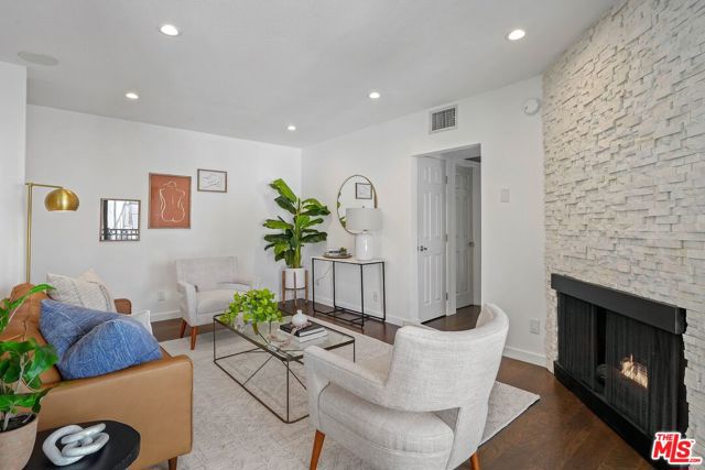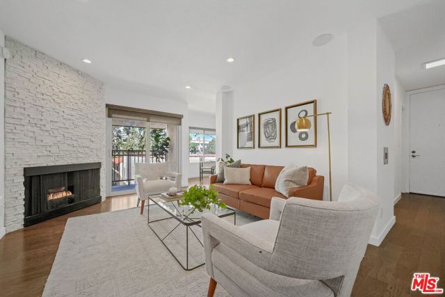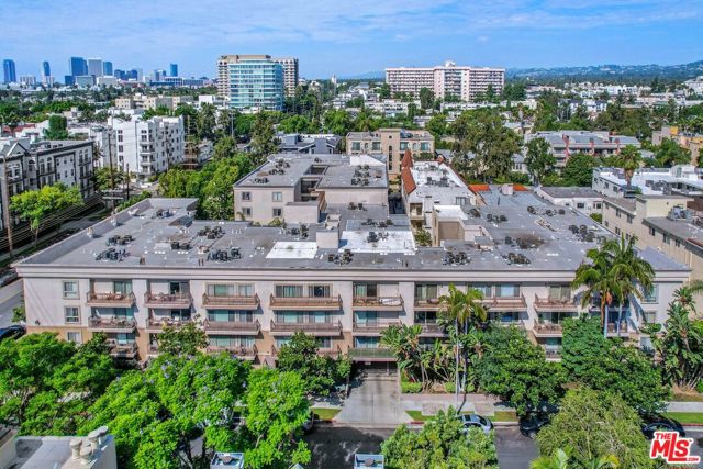 Welcome to a vibrant modern residence near LA’s trendiest restaurants and shopping in West Hollywood and Beverly Hills. If you’ve been searching for a building with hotel style amenities that offers very close proximity to Robertson street shops and restaurants and Cedars Sinai, this beautiful top floor condo has it! This quiet corner unit home is flooded with natural light throughout and has only one common wall for greater privacy. The inviting floor plan of this 2 bedroom 2 bath features a living room with a gas fireplace, newly upgraded kitchen and dining, hardwood floors throughout, glass tiled showers in both bathrooms, primary suite with large walk-in closet with built-ins, and lovely outdoor patio space with tree top views. Additional features include in unit washer/dryer and central air conditioning. Sophisticated building with a State-of-the Art Gym, sparkling lap pool, and a BBQ area for entertaining guests. Gated and Secure Garage with tandem parking spots, and building offers additional storage. HOA includes water, trash, and earthquake insurance. You’re going to love the iconic features of the Rob Clark building and it is next to the IVY, AOC, Alfred’s, the Beverly Center, and trendy restaurants that are Super Chic. Location, Location. Must see, don’t miss this opportunity!
