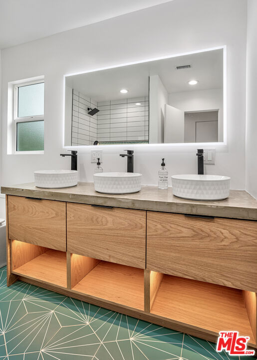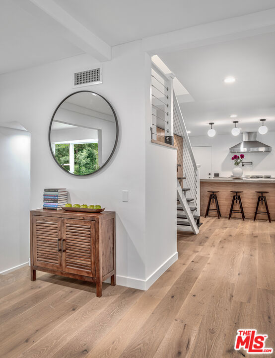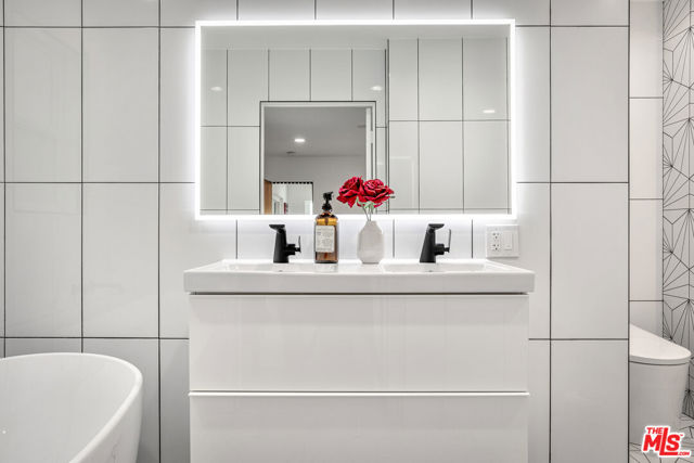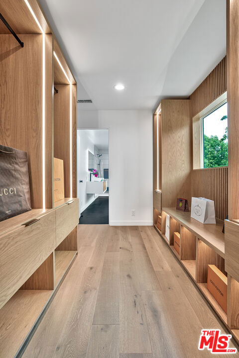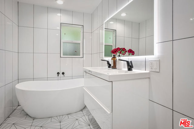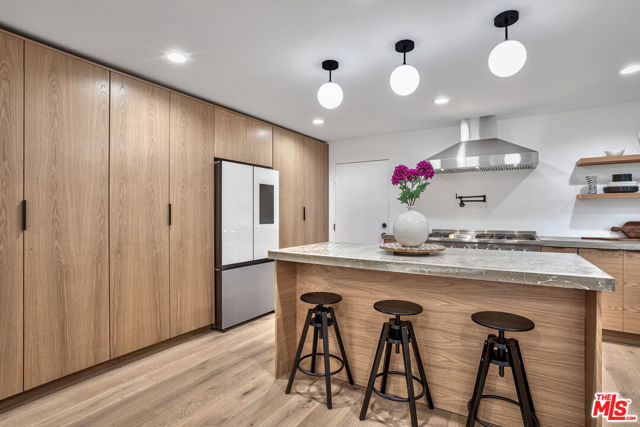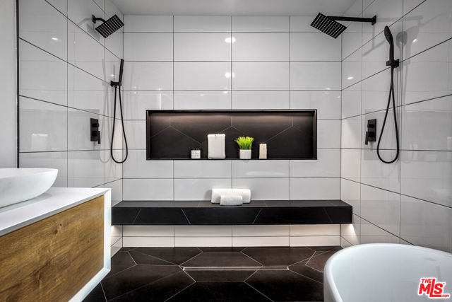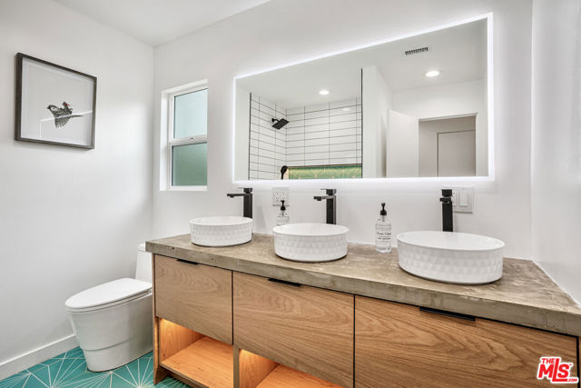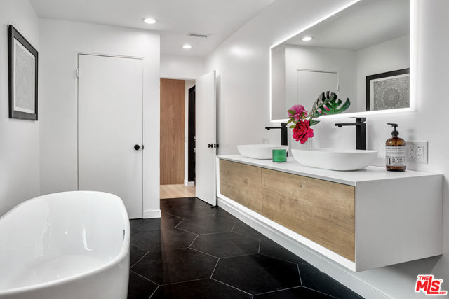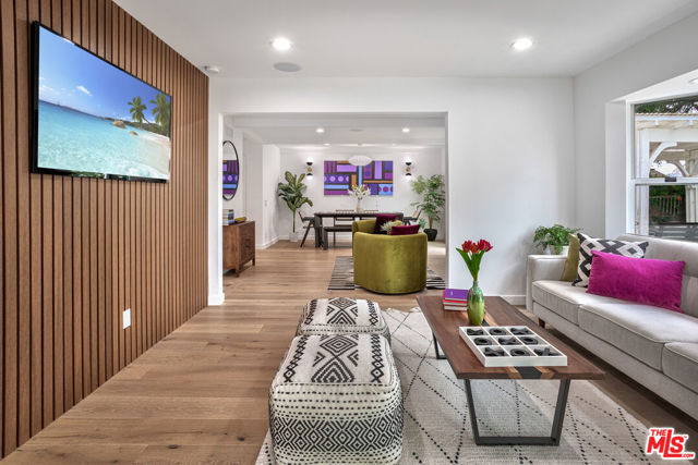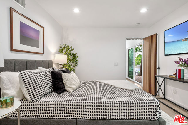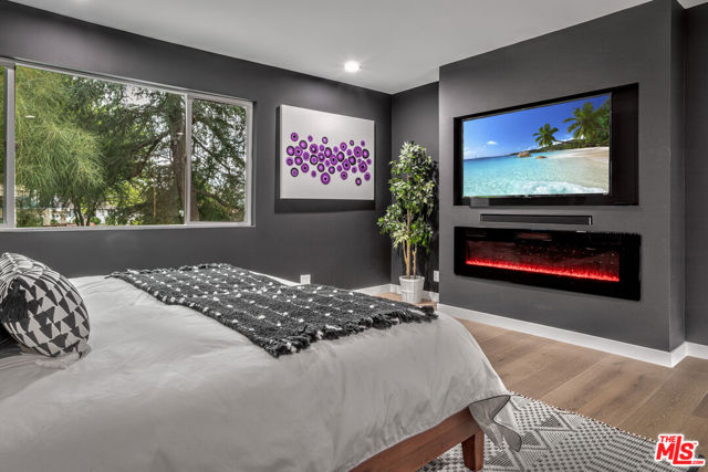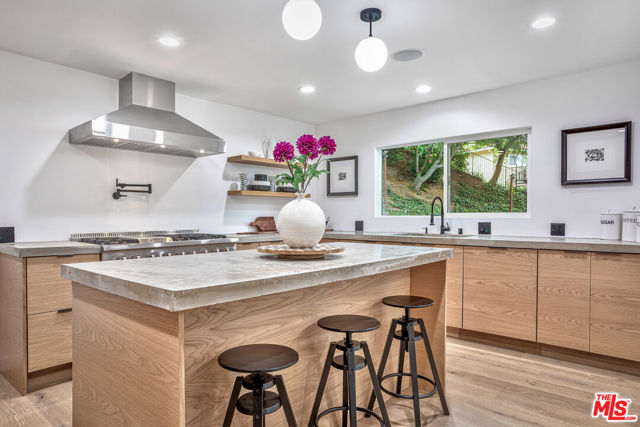 Welcome to your luxurious and custom-reimagined dream home in the exclusive Walnut Acres neighborhood of Woodland Hills. Built and designed by the highly sought after Mid-Century Modern designer Gregory Storm, comes his newest project, this stunning 5 bedroom, 4 bathroom home is set back on a private lot, offering breathtaking views and plenty of space to entertain. As you step inside, you’ll immediately be impressed by the high-end finishes and custom designs throughout. The open and airy floor plan features over 2,559 square feet of living space, making it the perfect place to call home. The chef’s kitchen is a true masterpiece, boasting top-of-the-line appliances, custom cabinetry, and beautiful Scandinavian style concrete countertops. The spacious living room and dining room are perfect for entertaining guests or relaxing with loved ones. The primary bedroom is a true oasis, complete with a luxurious en-suite bathroom, massive walk-in custom oak closet and stunning views of the surrounding landscape. Each of the additional 3 upstairs bedrooms are spacious and bright, with plenty of room for a growing family or guests. Downstairs, you will find the hidden 5th bedroom suite with en-suite custom bath and access to the backyard. The outdoor space is just as impressive, featuring a large and private lot with plenty of room to entertain and relax. Smart home features, including voice-controlled smart lighting, in-ceiling audio system, and 4k security camera system, make this home not only beautiful but also functional. Don’t miss out on the opportunity to own this incredible home in one of Woodland Hills’ most coveted neighborhoods, Walnut Acres.