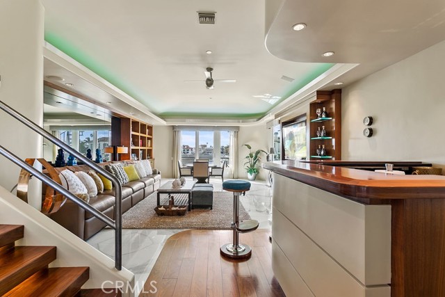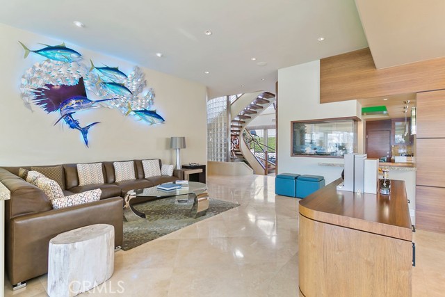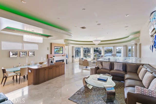 Fully-furnished trophy waterfront property sure to please the most selective tenants. Located on Gilbert Island, the premier location on Huntington Harbor but also just across PCH from the ocean, this home is a remodeled Modern masterpiece waiting for the next lucky occupants. Open channel views from almost every room with direct access to your own private 55-ft boat dock. Current owners spent over $500k on a custom remodel providing an open, flowing floor plan with 4 bedrooms (all with ensuite bathrooms), offices and a home theater / bonus room that is perfect for entertaining. Luxurious glass and wooden custom built-in’s and accent pieces throughout the home provide a timeless relaxing space with an abundance of natural light. Two-story home with almost 4,800 sq ft and multiple fireplaces, saltwater fish tank, wet bar, custom lighting throughout and everything you would expect to have in a premier waterfront property. Large waterfront patio with multiple seating areas, outdoor kitchen, BBQ and more. All furniture and furnishings are included in lease. Easy boating access to the main channel while just steps from putting your toes in the sand at the beach. This really is the custom home and lifestyle you are looking for in Huntington Harbor.
