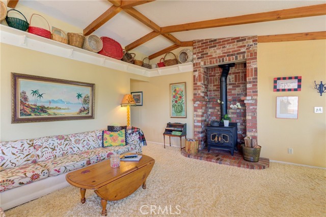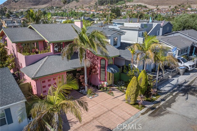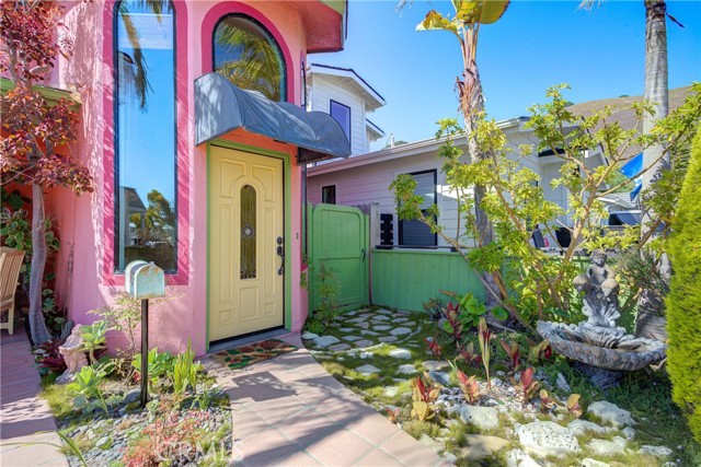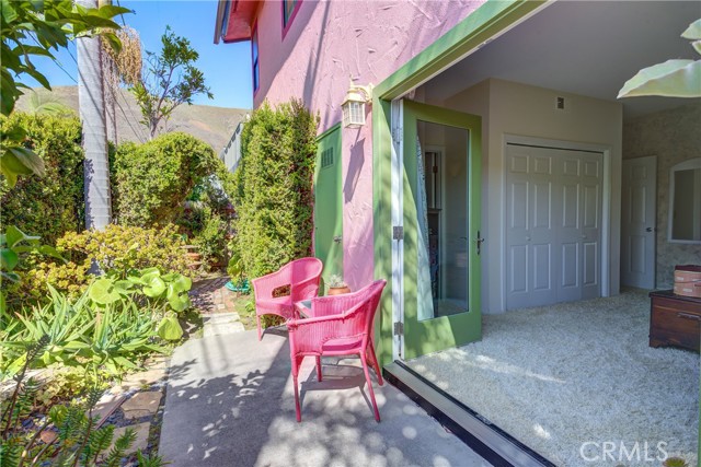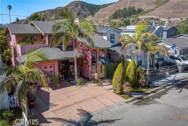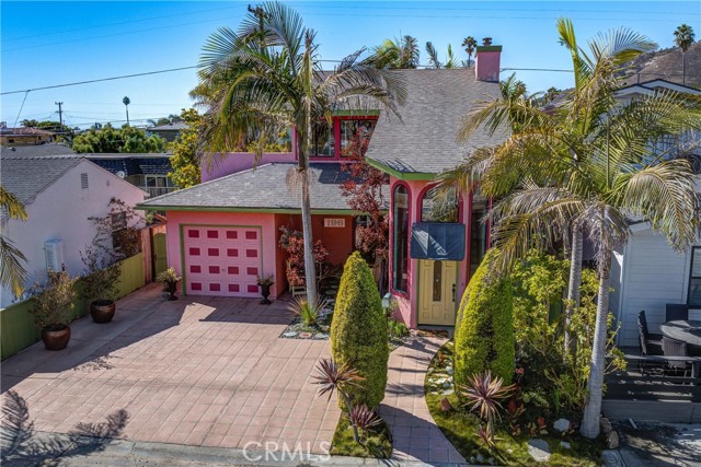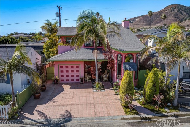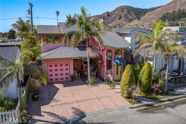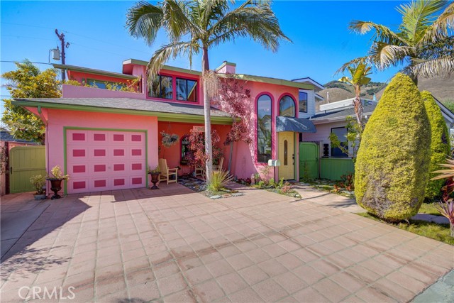 Enchanting Spanish Style Home in the Heart of Shell Beach Village. Charming throughout with new arched windows to bring in lots of natural light. Warm and wonderful with exposed wood beams in the living room and a cozy brick wood burning fireplace. Updated with a new forced air heater and new water heater. Welcome the ocean breeze from the new French doors in the dining room. The Delightful layout features a large master bedroom downstairs with new French doors that open to the glorious back garden. The spacious master bath has dual vanities. The lower guest room has a large walk-in closet. The upstairs bedroom is perfect for guests or use as an office. You will find indoor laundry and a one car garage. Plus, Bonus parking in the driveway. Relax in the peaceful and private, beautiful backyard or front courtyard. Watch the Pismo Beach 4th of July Fireworks from the deck and enjoy sensational Shell Beach sunsets every night. A short stroll to the cliffs and coastal Dining. This home is bursting with character and color. You will fall in love with this dreamy pink beach home.