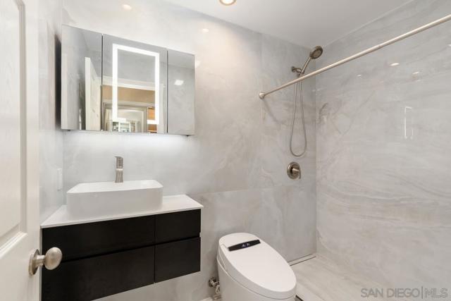 Welcome to the beautiful, gated community of Village Walk! This spacious 2-bedroom, 2-bathroom condo has been completely remodeled. This home has been freshly painted with recessed lighting, travertine tile, and crown molding throughout the unit. The kitchen, bar, and appliances have been fully custom-upgraded. Double pane windows throughout with custom blackout rolldown shades and custom patio closet doors. Both bathrooms have been fully remodeled with full-walled large porcelain tiles, floating vanities, recessed lighting, and electric toilets. Upgraded high-end air conditioning system with air filtration system and upgraded washer/dryer. Home theater custom cables have been installed through the walls with a cable management concealing system. The community offers a pool, spa, fitness center, clubhouse, and playground.