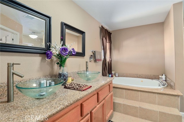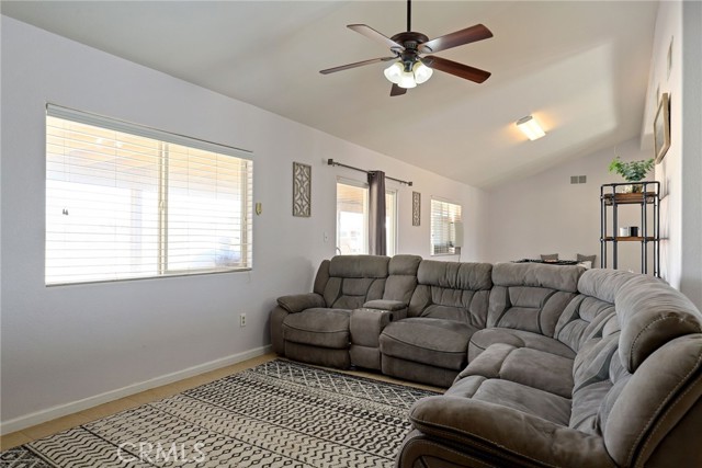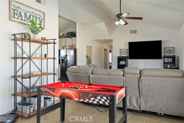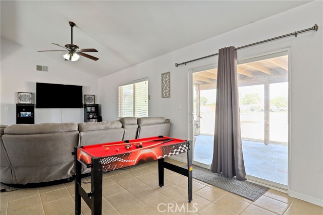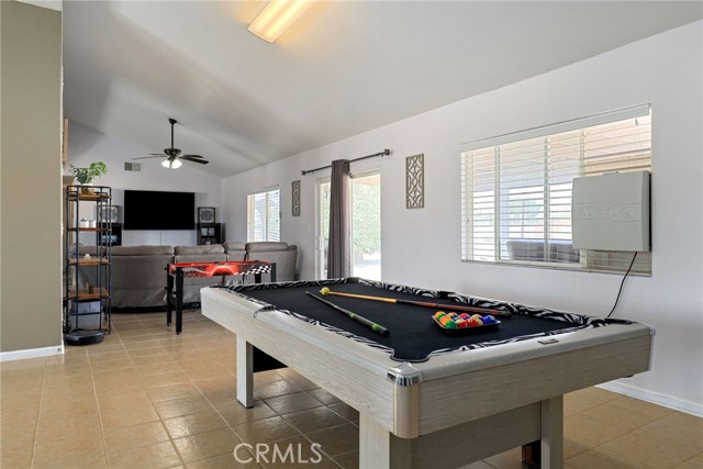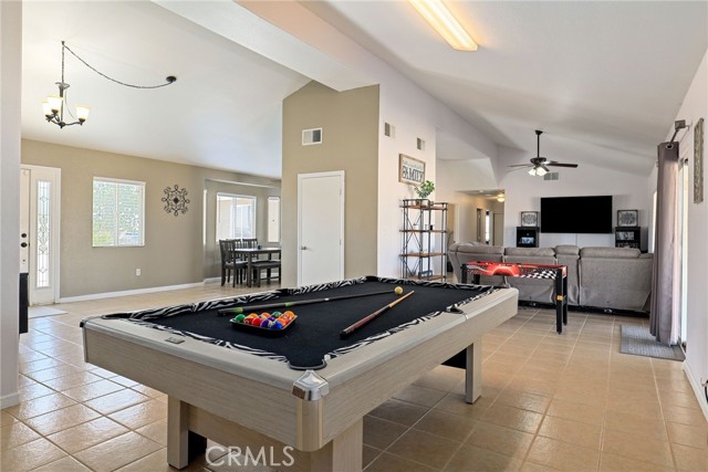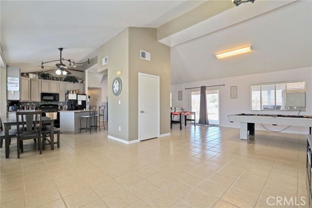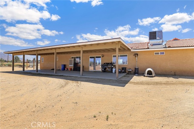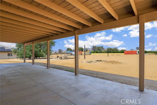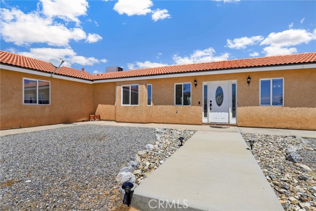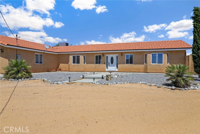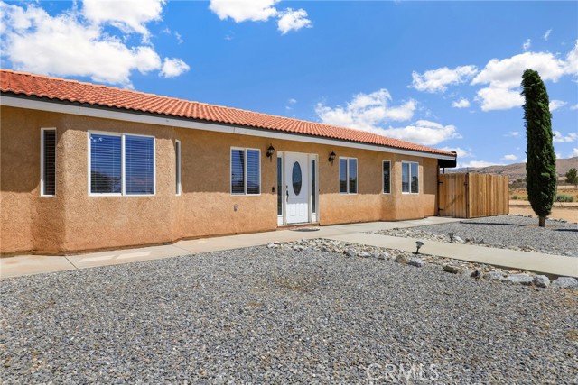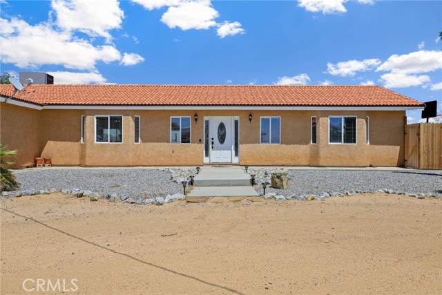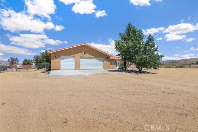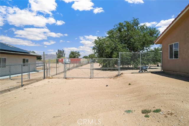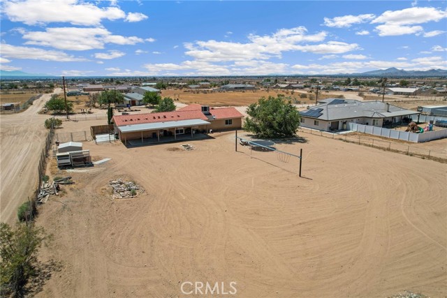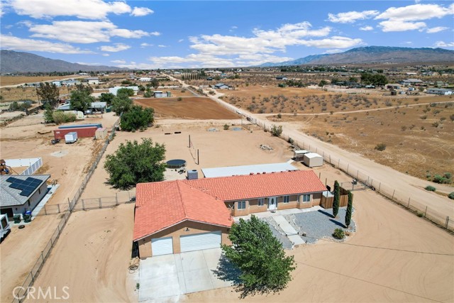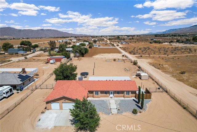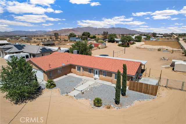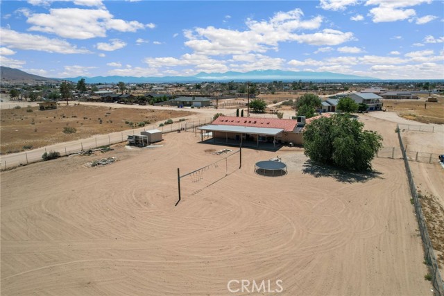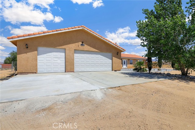 Beautiful 3 bedroom 3 bathroom home on a large 42,000 square foot lot with views of the hills and mountains! Located in the un-incorporated area of Apple Valley, this home has a long extended driveway that brings you to the front of the house with gorgeous rock-scaping, and a 3 car attached garage with attic. rnEnter through your front door into an open foyer split floor plan that is leads you to the kitchen, dining room, living room and billiard room.rnThe open kitchen features include granite countertops, island with sink, dishwasher, and walk-in pantry!rnAll bedrooms have their own bathroom. The primary suite has a double door entry and a slider to the backyard. The primary bathroom features double sinks, separate tub, stand alone shower, and privacy toilet door.rnThe backyard has endless possibilities! There is a covered patio the full length of the house and the chicken coop is included.rnOther features include: interior repainted last year, cathedral ceilings throughout, hallway closet space, 2018 HVAC and swamp cooler, Full Dedicated laundry room with hookups for sink.