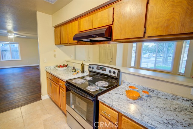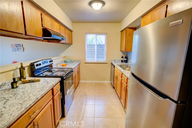 THIS LOVELY HOME IS MOVE-IN READY! The owner spared no expense in upgrading and modernizing this gorgeous 3-bedroom, 2-bath home. With a freshly painted interior and recently renovated front yard landscape, this neighborhood jewel comes with the following brand-new additions: Energy efficient double-pane windows and window coverings throughout; Luxurious plank flooring in living room, hallway, and laundry area; Plush carpeting in all three bedrooms; Handsome oak kitchen base cabinets; Multicolored countertops and double-wide sink with faucet; Lavish backsplash and exhaust hood; Bathroom vanity and toilet inside main bath; Security door on front porch; Ceiling fans; And all major appliances (dishwasher, electric range, refrigerator, washer, and electric dryer). Other amenities include ceramic tile floors in the dining room, kitchen, and both bathrooms; double French doors in the living room and a brick fireplace; custom organizers inside all bedroom closets; master bath features a built-in dressing table and a shower stall in place of a second bathtub; With a convenient location near shopping and easy access to Highway 99, you just won’t find a nicer house to come home to.