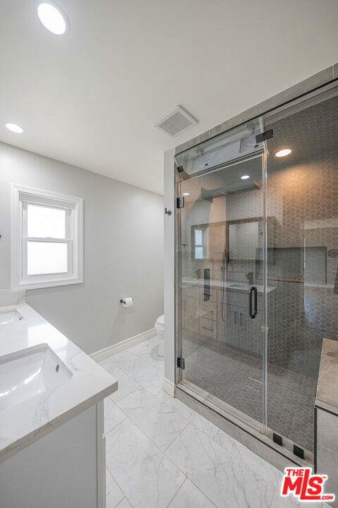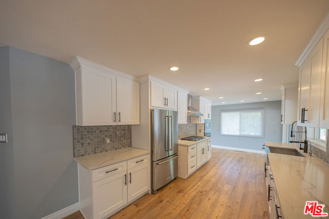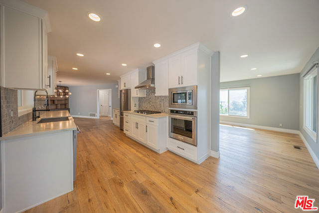 Perched atop a hill, this beautifully renovated home offers breathtaking panoramic views and privacy. The interior boasts contemporary aesthetics and functionality with smart features like lighting, a Nest thermostat, and electronic locks. Outside, a gated entry leads to green landscaping controlled by a smart Rachio watering system, along with a citrus tree-lined backyard offering spectacular views of breathtaking mountains & city lights. With recent upgrades, the home is thoughtfully designed with attention to detail. The main level features a spacious living room with a cozy fireplace, stunning views, and a custom-built dry bar. The kitchen, equipped with stainless steel appliances, satisfies all your cooking and entertaining needs. The dining room includes premium custom-built floating cabinetry. The master bedroom offers mountain views and amazing privacy, while the luxurious master bathroom features a steam shower. On the lower level, there’s a bedroom/office with a walk-in closet and fireplace, a dual-sink bathroom, and a hallway leading directly to your epoxy-floor garage capable of an EV charger. This home perfectly blends modern luxury and practicality, providing a rare opportunity to own a hilltop property in Glendale with exceptional qualities.