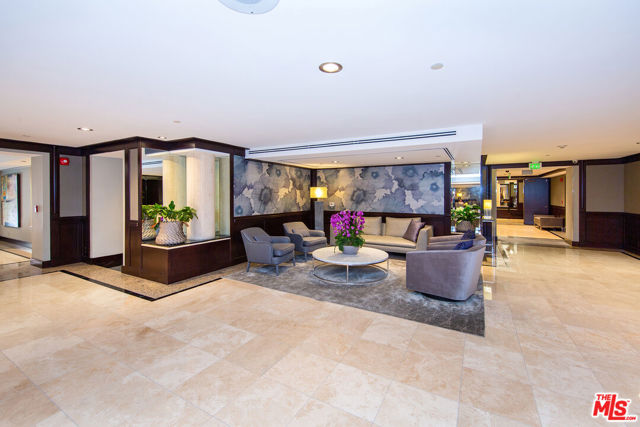 Charming and spacious 2 BR, 2 BA Condominium in a full service building in prime Beverly Hills Location north of Wilshire Blvd. Single level with very open floor plan. Large and elegant formal dining and living room with new flooring, wet bar & fireplace. Spacious kitchen with refrigerator, dishwasher, double oven and beautiful breakfast area with garden window. 2 Separate bedroom with master bedroom with large walk in closet and master bathroom with separate shower, tub, double sinks. Large balcony off living room and master bedroom. Fabulous unit in a luxury full service building with amenities which include side by side parking spaces, gym, spa, pool, sauna, massive recreation room, security guard, concierge, door man and valet parking. This is a unique opportunity in live in luxury in prime Beverly Hills. Easy to show.