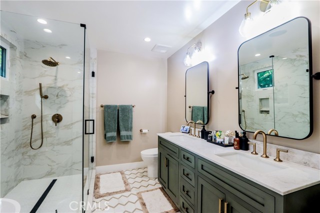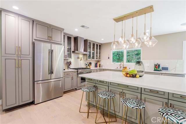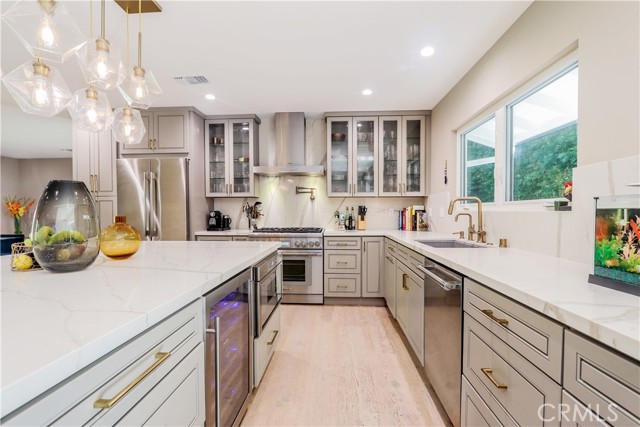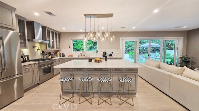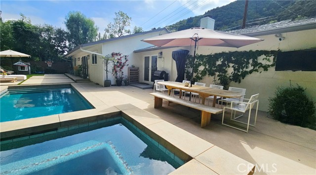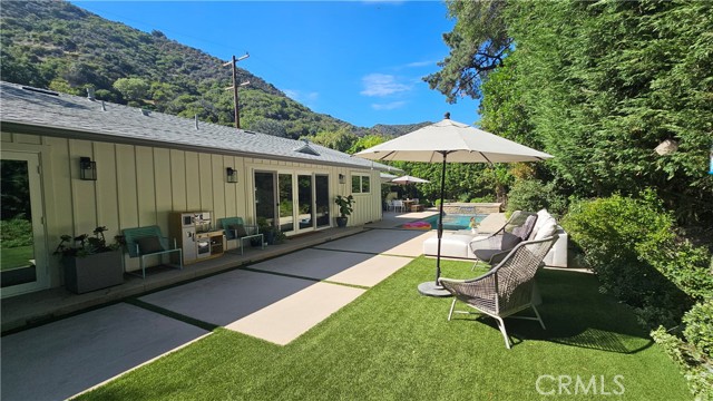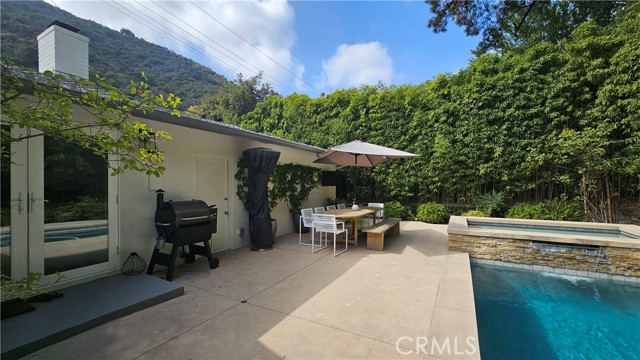 Located in Brentwood’s prestigious neighborhood of Mandeville Canyon, this recently renovated 3 bedroom 2 bathroom ranch-style home is move-in-ready. Set against the backdrop of Mandeville Canyon’s lush greenery this home offers the ultimate blend of modern luxury and natural beauty. Meticulously remodeled to perfection, you are welcomed by a beautiful open-concept living space, bathed in natural light, creating a warm and inviting ambiance. A gourmet kitchen awaits the culinary enthusiast, complete with Thermador Professional appliances, quartz countertops/backsplash, new cabinetry, wine cooler, and extra large island. The adjacent dining area offers a fireplace and is perfect for intimate family meals or entertaining guests. The primary bedroom is a true sanctuary with french doors leading to your backyard with nature views and includes a walk-in closet and a brand new ensuite bathroom with a luxurious freestanding tub, and a large shower. Two additional spacious bedrooms, one with a walk-in closet, have been thoughtfully designed and are perfect for family members, guests, or a home office. A second brand new bathroom with elegant finishes ensures convenience and style. The centerpiece of the property is the salt water pool and spa with waterfall that has a recently upgraded heater, salt system, and control panels that can be controlled via an app, allowing you to schedule and prepare your swim or spa remotely. The backyard will leave you feeling a life of luxury with a peaceful lounging area and separate dining area. This technologically advanced home includes surveillance cameras around the property, Google-integration, Wi-fi extenders throughout and a built-in Sonos audio system for the entire home. Additional upgrades and features include a new roof, hardwood flooring throughout, new exterior and interior custom paint, tankless water heater, all new windows and doors, multiple fruit trees and a beautiful entry door. Easy access to cycling, mountain biking and hiking trails and a short drive to top-rated schools, upscale Brentwood and Pacific Palisades shopping and dining, and Santa Monica Beach. Your dream home awaits in the heart of Mandeville Canyon. Immerse yourself in luxury, nature, and modern living. Schedule a private showing today and experience the ultimate lifestyle upgrade.