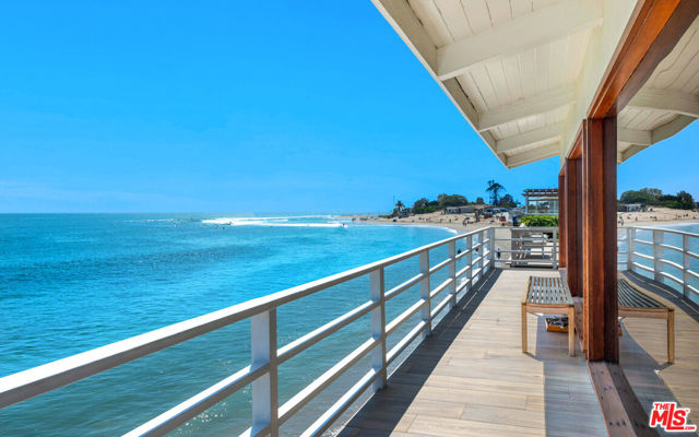 This ultimate beach house has approximately 74′ of beach frontage, on two legal lots, in the heart of Malibu with breathtaking ocean, Catalina and Malibu Pier views. With only steps to sandy beach, this four bedroom/six bath home has a gated brick motor courtyard plus two-car garage. An elegant ocean view entry that flows out to a wraparound entertainer’s deck that’s perfect for grand or intimate gatherings. The formal living room with fireplace and dining area has hardwood floors and floor-to-ceiling windows with breathtaking ocean views and glass sliders that open to the deck. The open granite island kitchen with ocean views features a large breakfast bar and high-end appliances. Sun-filled owner’s suite with fireplace and breathtaking ocean views has a vast closet and spa-like bath. Close to the famed Nobu and local favorite Malibu Farm restaurants and downtown shopping.