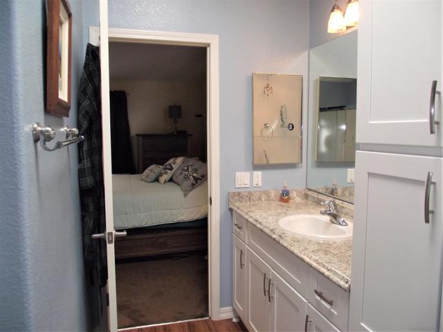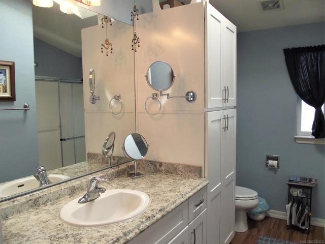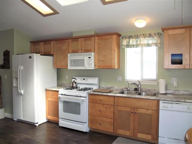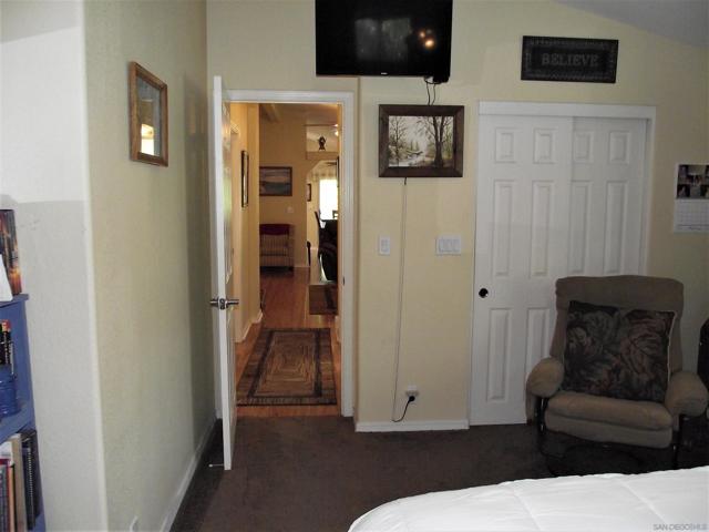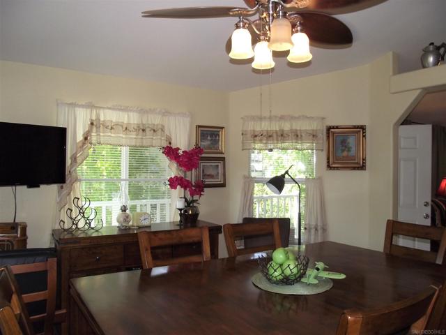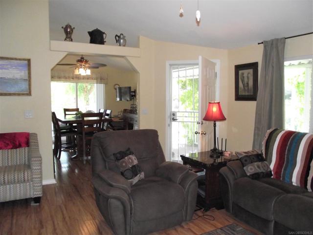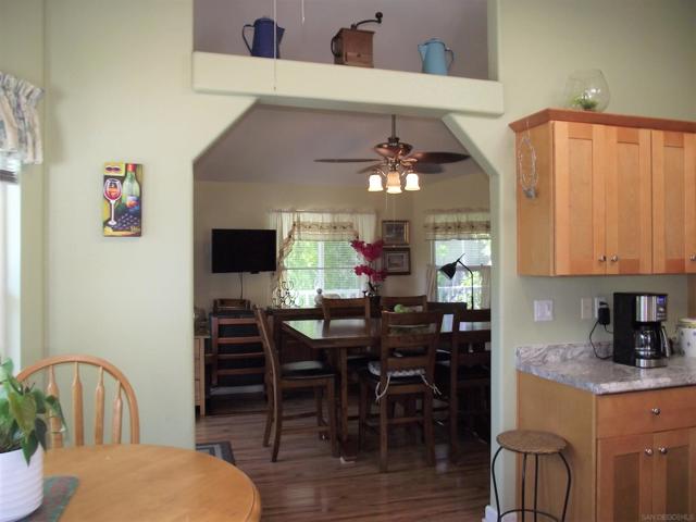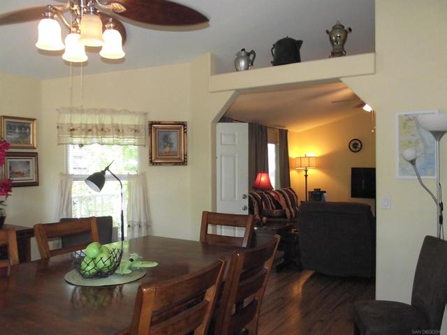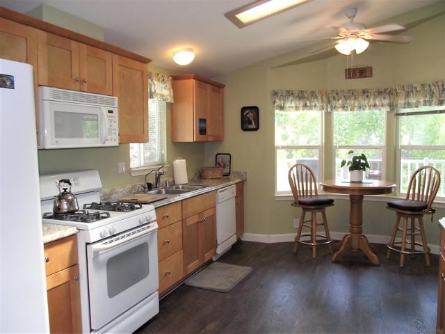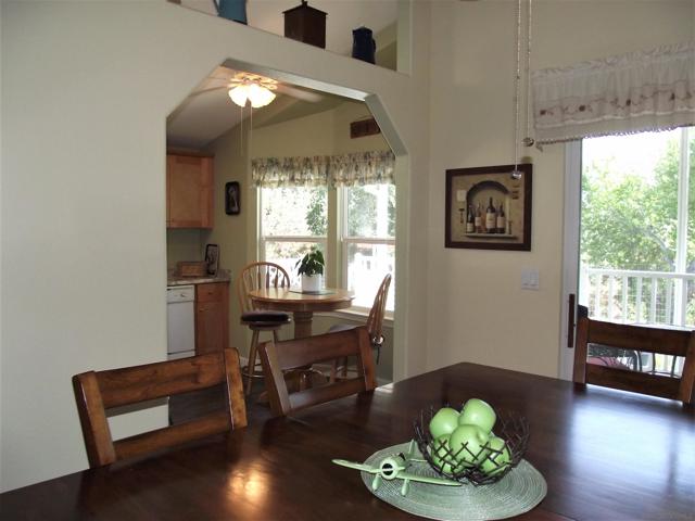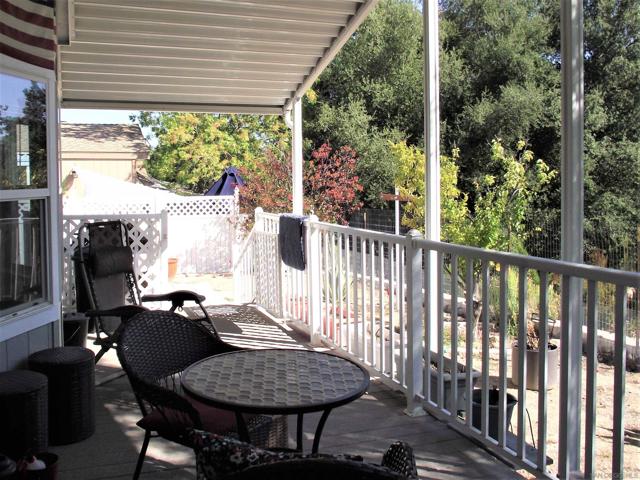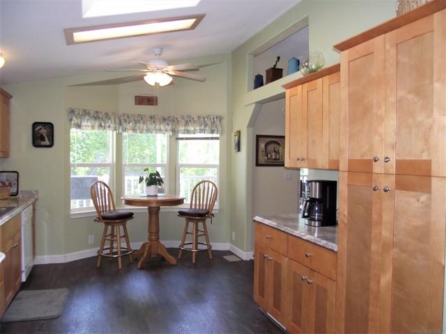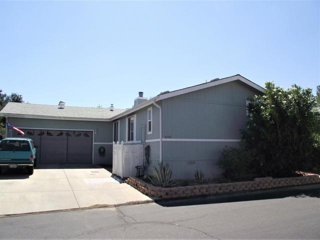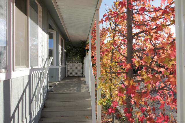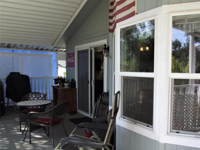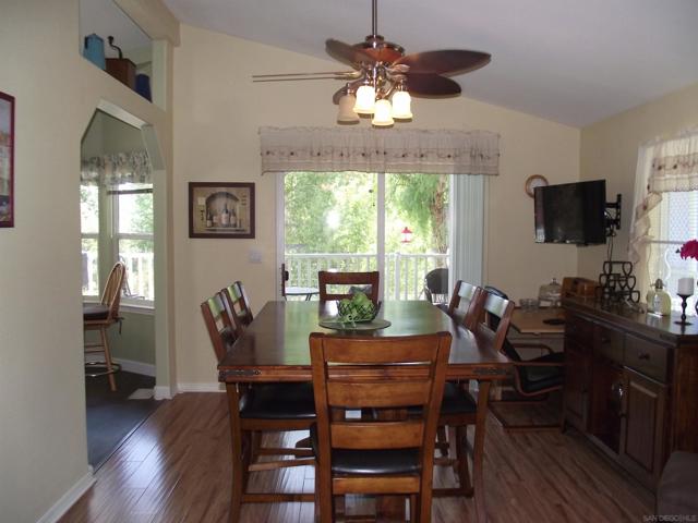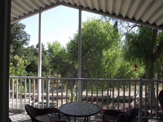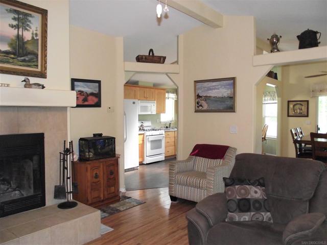 A GREAT OPPORTUNITY! BUY LAND & HOME! NO RENT! AN AFFORDABLE RETIREMENT IN SAN DIEGO COUNTY! Walk along a green lined path to the entry deck of this lovely property, step into an inviting home, and be greeted by a tiled wood-burning fireplace and clean laminate flooring. The remodeled Kitchen features new wood cabinets, new Formica counters and waterproof vinyl plank flooring. From the formal dining room, step out to a relaxing deck overlooking mature trees and the natural back-country landscape beyond. Here you will enjoy Winter, Spring, Summer and Fall, starry skies, exciting wildlife, all from the comforts of this property. Start your day in the sunny Kitchen breakfast nook. The formal Dining Room will accommodate your table filled with family and friends, and let them spill out onto the spacious deck. And 2 Guest Bedrooms for overnight visits! For everyday convenience the Primary Suite has a large wardrobe, while the up-dated En-Suit offers a soaking tub/shower combo, and linen storage. Skylights bring in natural light, and double-glazed windows & ceiling fans aid in energy efficiency. AND the 2-car garage with workbench and extra storage room is a dream. Bring your love of gardening & landscaping and indulge your imagination. The Stone Ridge Clubhouse offers a pool & spa, library, billiard tables, gourmet Kitchen, and planned activities & social gatherings. PLAN A VISIT AND SEE IT ALL!