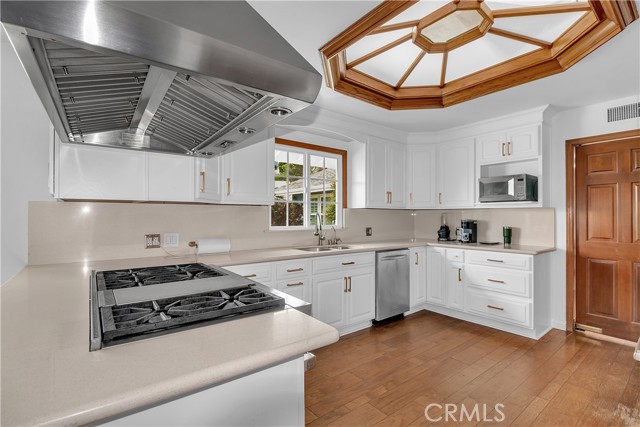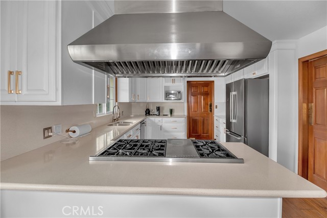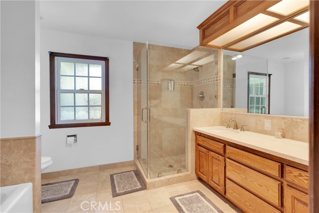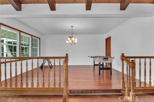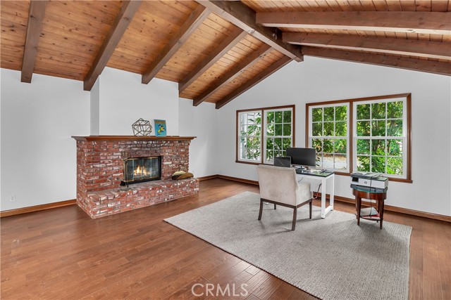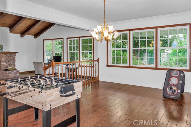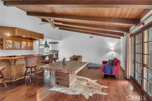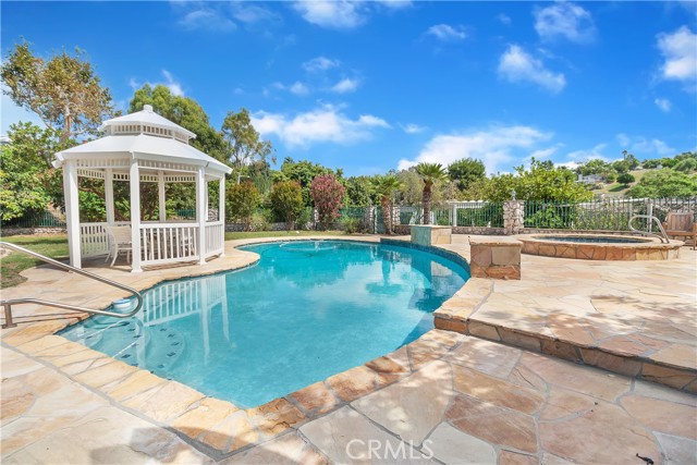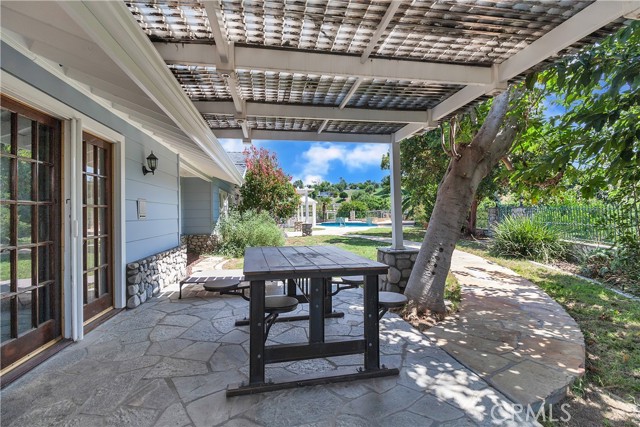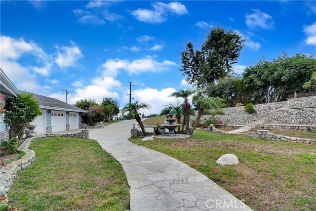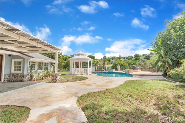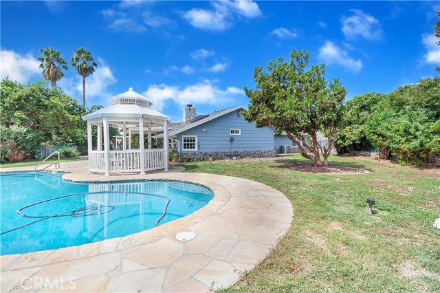 Stunning one-story Ranch style home nestled in the highly desirable serene hills of La Habra heights. This exquisite 3,730 square foot home features 5 bedrooms and 4 bathrooms. 4 bedrooms are on one side of the house, and the 5th bedroom on the opposite side which is perfect for an office/or guest quarters. The open floor plan has an abundance of natural light soaring through large openings and skylights which is showcased in all rooms. Hardwood-style floors vaulted exposed beam wood ceiling across the generously sized family room, a custom wet bar and a fireplace, great for entertainment for your guests, and the large four panel French doors leads out to the breathtaking oasis. The formal living room also has a fireplace and is adjacent to the elegant formal dining room. The kitchen features solid wood cabinetry, Cesar Stone countertops and top of line appliances including a Wolf brand six burner oven/range. A large skylight from the center of the kitchen boasts abundant daylight. The breakfast nook includes a beautiful bay window next to the kitchen. The primary master suite features direct access to the patio. It includes an oversized walk-in closet, an expansive double vanity and a single shower room. The elegant sunken tub is framed with beautiful windows where you can take a soothing soak under a skylight and overlook the backyard swimming pool. Additional amenities, butler’s pantry and individual laundry room. Beyond the flat land lush yard is your own private orchard with a variety of fruit trees, avocado, lemon, mango and guava among other fruit trees. 3-car attached garage, Huge separate driveway for RV/boat parking. This one of kind home is situated in a private and secluded cul-de-sac, on an expansive most flat lot of over 55,000 sq ft. Outdoor sparkling pool, spa, gazebo and lush landscape provide resort-like amenities. Highly rated school district, and within proximity to shopping and fine dining.
