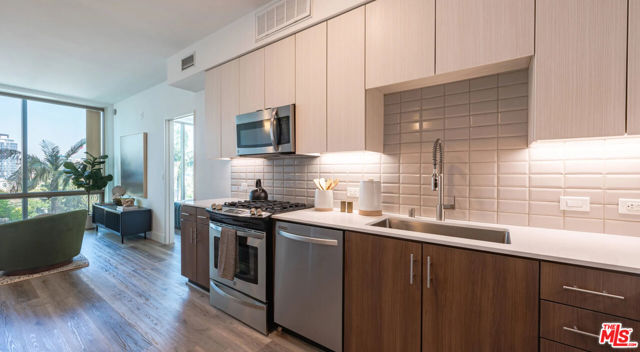 This beautiful 1BD/1BA is available immediately in this amazing community inspired by the contemporary lifestyle of Los Angeles. Beautiful views, extensive amenities, and attention to detail solidify its status as a unique, high-end living experience on the Wilshire Corridor. The apartment home features large closets, stainless steel appliances, Toto fixtures, euro-style cabinetry, granite countertops. Kitchens and living rooms have bamboo flooring, berber carpeting in bedrooms, and marmoleum flooring in bath areas. Soaring windows maximize natural light and create an airy, open feel. Flawless high-end finishes and a sleek interior design prove that luxury is truly found in the details. Residents enjoy exclusive access to the amenity package, including a fully-equipped fitness center, a spacious lounge, SkyBridge Pool & Garden, and a stylish lounge providing a VIP experience like no other. This community is also pet-friendly with a dog run, so your furry friends can join in on the fun! Your new luxury lifestyle awaits.
