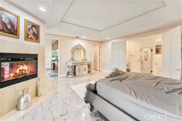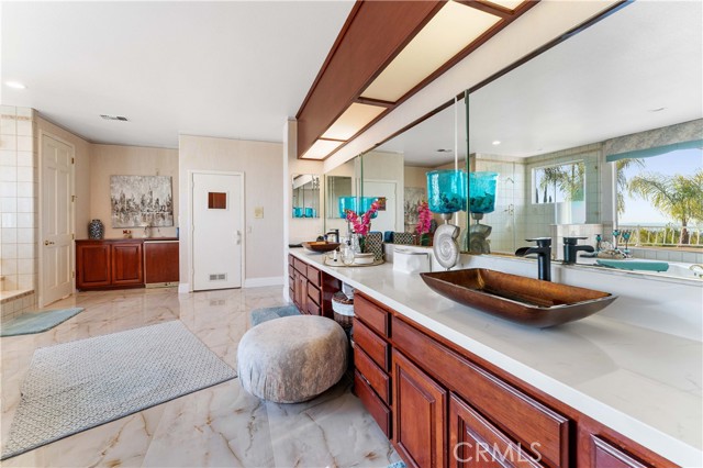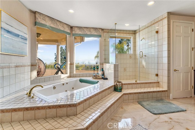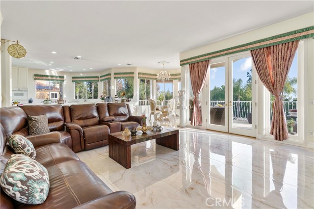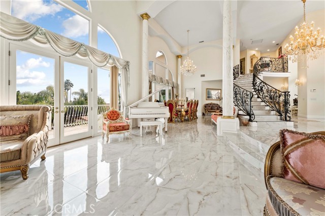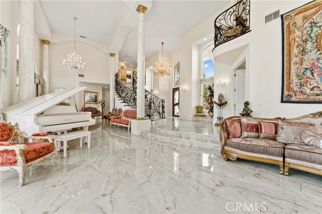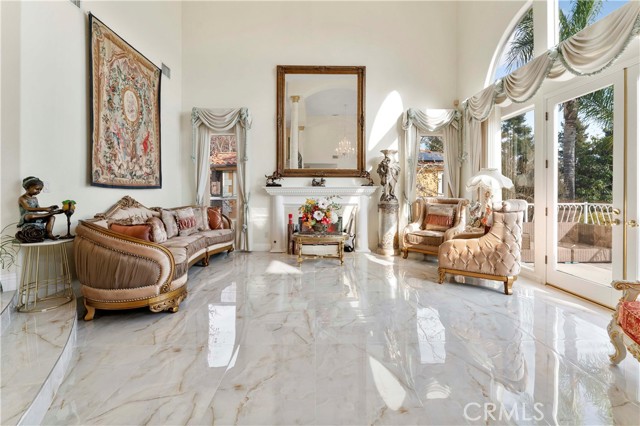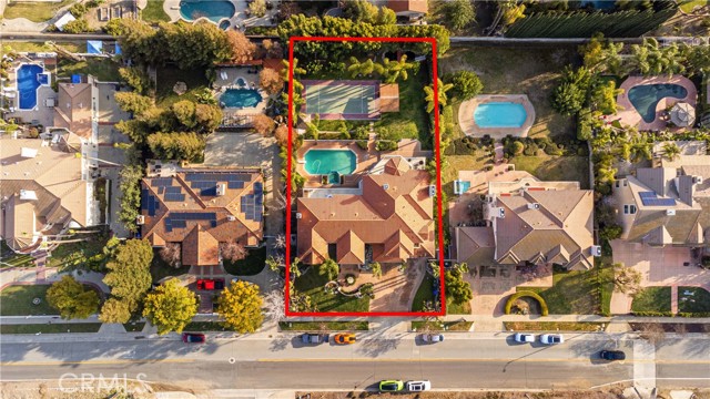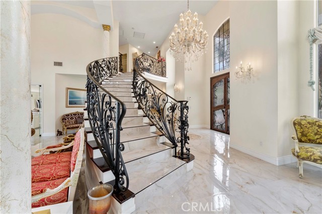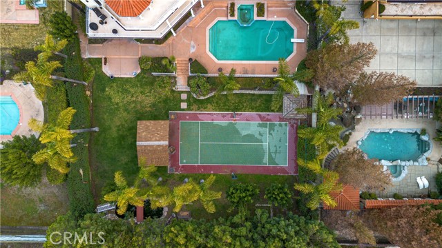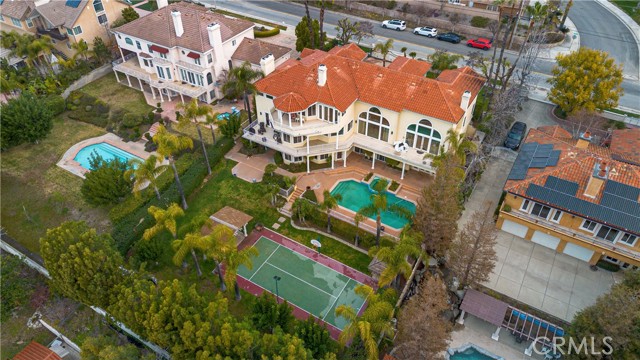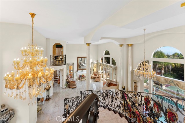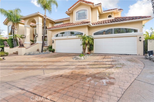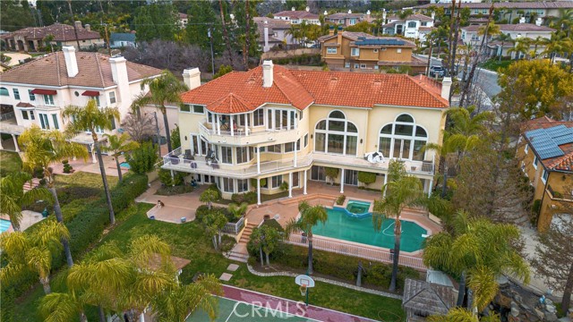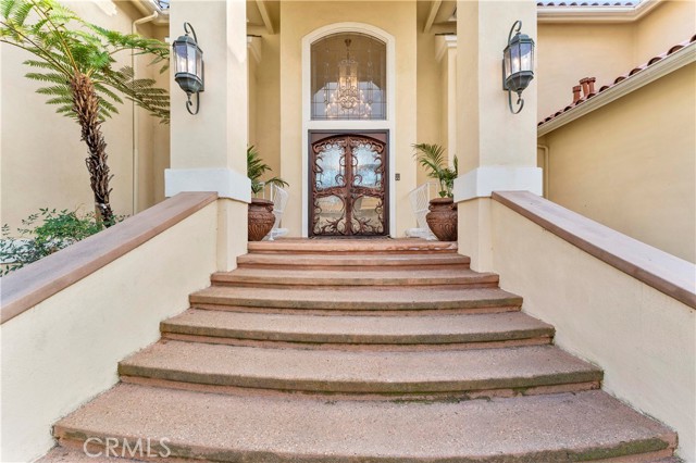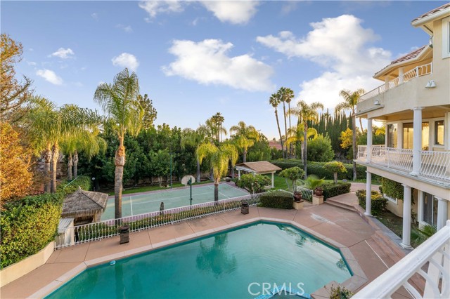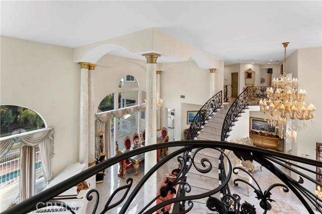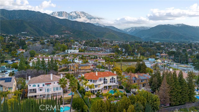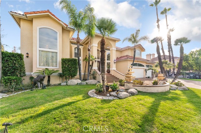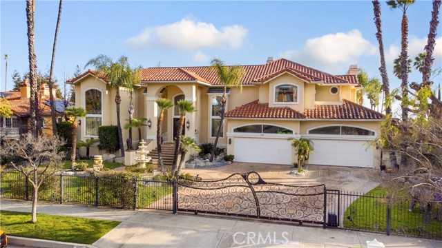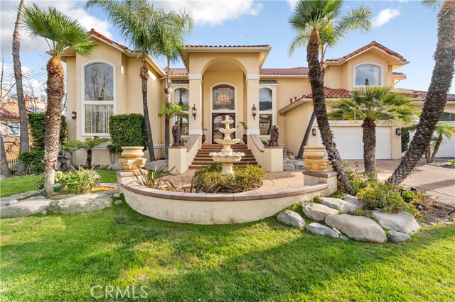 This beautiful, gated half-acre Upland estate sits in a quiet neighborhood. The entire property has been meticulously landscaped and includes a multi-tiered backyard oasis you have to see to believe. In addition to the gorgeous pool & spa, there’s a sports court (basketball/tennis/pickleball), patios, a pavilion for entertaining, a koi pond and plenty of yard space for Fido to run around. The property is also surrounded by towering trees for privacy. rnrnThe Mediterranean-style, 6 bed/7.5 bath, 3-level home includes an elevator and recently got a $600,000 luxury facelift. Inside the grand double front doors, you’ll find imported porcelain flooring, soaring cathedral ceilings, stunning chandeliers, Venetian plaster columns, a curved staircase, stone fireplaces and floor-to-ceiling windows that let in lots of natural light. rnrnTucked at the back of the main level, the beautiful kitchen is open to the family room (with a cozy fireplace). The kitchen includes quartz countertops, pro-style appliances, new cabinets that go all the way to the ceiling, a dining nook, a center island and a long breakfast bar. Just steps away, you can dine or entertain on the expansive & sun-drenched back balcony. The main level also includes a guest room, full bathroom and a powder room. rnrnHead up the back stairs or up that grand central staircase to find the luxurious primary suite, complete with tray ceilings, a double-sided fireplace and a private balcony with views of the city lights below. The massive ensuite boasts a custom walk-thru closet, a sauna, dual sinks, a jetted tub and a separate glass shower. The upper level also includes a guest room and full bathroom. rnrnStill need more space? Take the elevator down to the lower level, where you’ll find high ceilings and three guest rooms, all with access to the pool deck. The unique bathrooms on this level and throughout the home have been upgraded with exquisite tilework and full-body shower panel systems. The lower level also offers a full living/game room (with another fireplace), a second kitchen, and a laundry room. rnrnThe house has three HVAC units to keep everyone comfortable, and don’t forget about the rare 4-car garage. Plenty of gated parking out front, too.rnrnThis San Antonio Heights retreat is zoned to excellent schools! You’ll be within 5 minutes of all the shopping & dining along the Foothills Fwy, with golf courses and the 10 Fwy just 10 minutes from your front door.