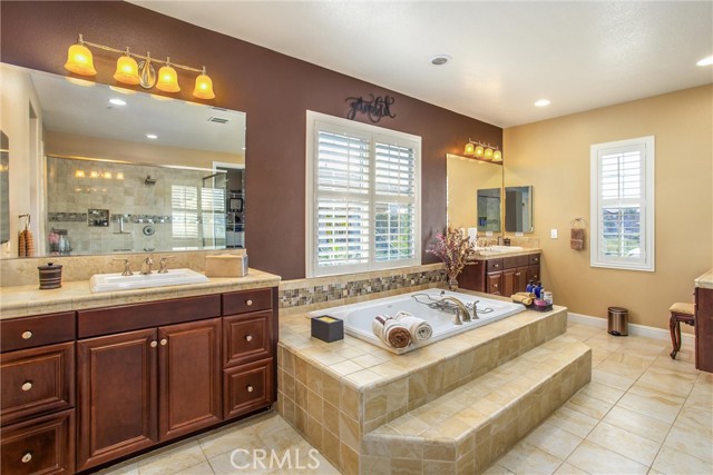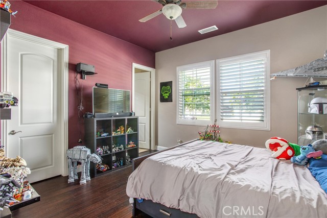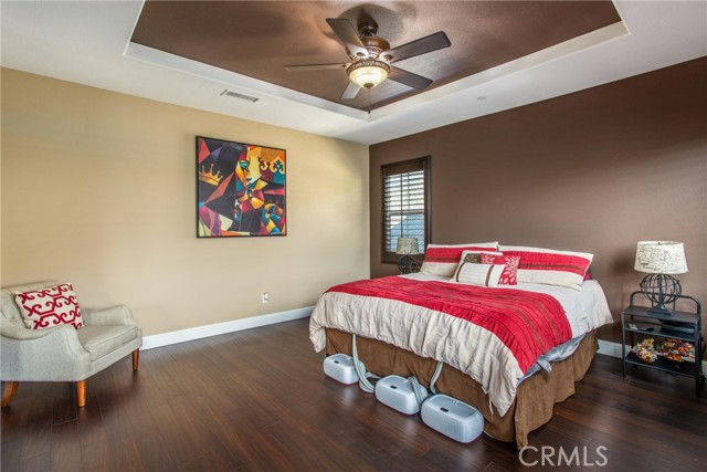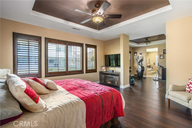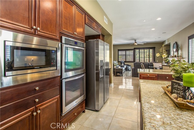 Must See Property situated in a Gorgeous Private Gated Community in the Highland Estates. This beautiful home a Two Story property with Double Door Entry with Grand Dual Stairway Casing. Subject has Open Designed Kitchen that features center island and holds stainless steel appliances, built-in microwave, stainless steel dual wall double oven, tile flooring, with walk-in pantry. This home has 4 bedrooms with 4 full bathrooms and all rooms also have walk-in closets. Plantation Shutters throughout entire home, with porcelain tile flooring, ceiling fans throughout home. Master bedroom with Retreat that also entertains vault ceiling. Must not forget Private Home Office ! The backyard contains a cozy well landscaped scenery, Mantled Fireplace, Outdoor Stoned Kitchen for entertainment. Newly Purchased Solar Systems / with Tesla Battery Charger and also New A/C Unit recently installed Garage. Tandem garage entertain as Private Gymrnat your pleasure. This amazing home want last long !!!!!