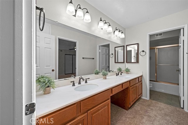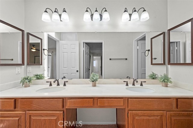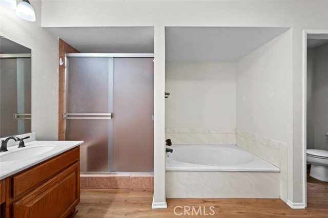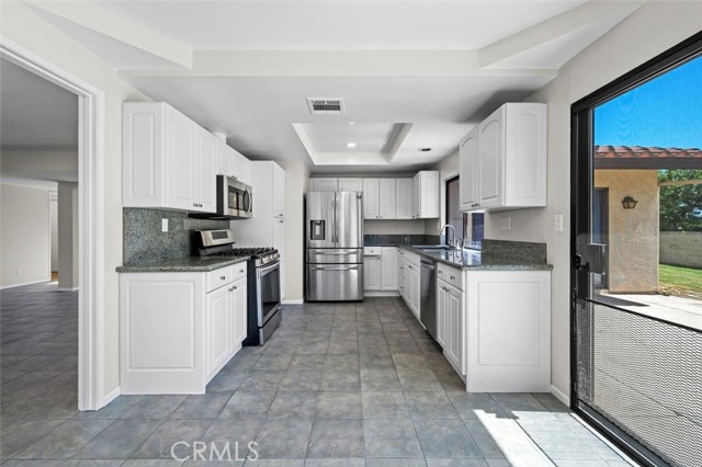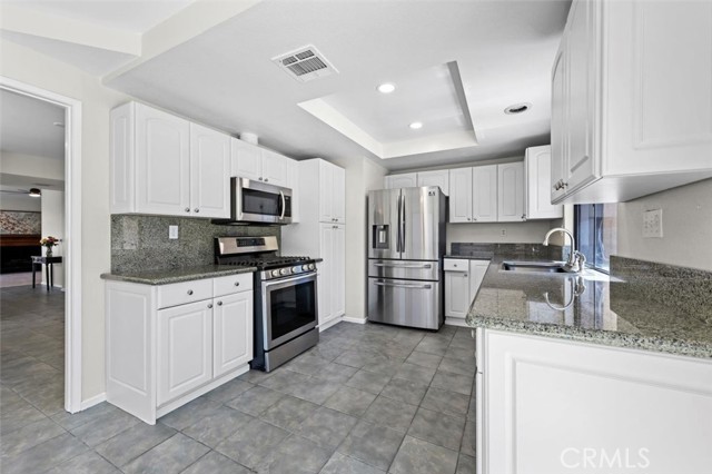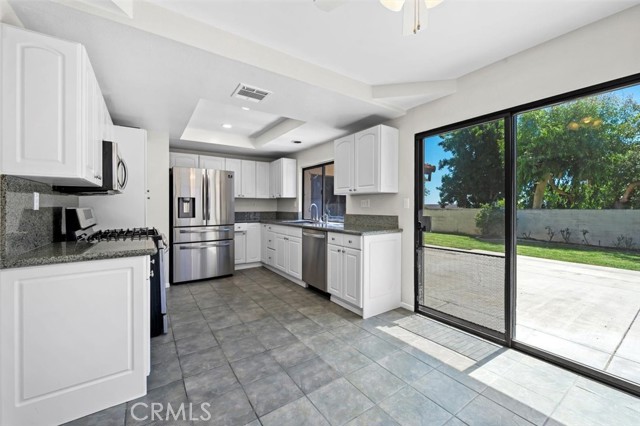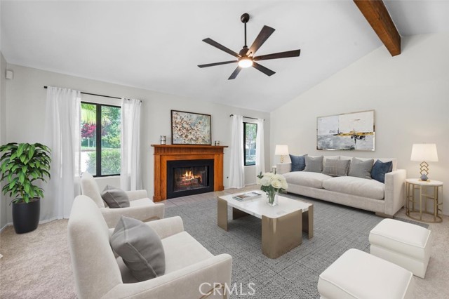 Nestled within the highly sought-after Villa Montelena gated community, this stunning property offers an exceptional living experience. A comprehensive interior makeover has revitalized this home, featuring fresh paint, new flooring, and modern lighting fixtures, among other updates. The living room boasts a stunning beamed ceiling and a cozy fireplace, setting the stage for comfort and elegance. The open concept layout seamlessly connects the living room, dining area, and kitchen, enhancing both flow and sociability. The spacious primary suite offers a double door entry, beamed ceiling, and direct access to the back patio for convenience and relaxation. The primary bathroom is a luxurious retreat with dual sinks, a separate soaking tub, and a step-in shower, providing an oasis of tranquility. Two generous bedrooms offer ample space for family members or guests and are versatile for various needs. These bedrooms share a beautifully appointed Jack and Jill bathroom, ensuring both convenience and privacy. Step into your own private courtyard, a tranquil space ideal for morning coffee and relaxation, which seamlessly connects to the beautiful backyard, creating an inviting outdoor area perfect for entertaining or unwinding. Experience the epitome of comfortable and elegant living in this Villa Montelena residence