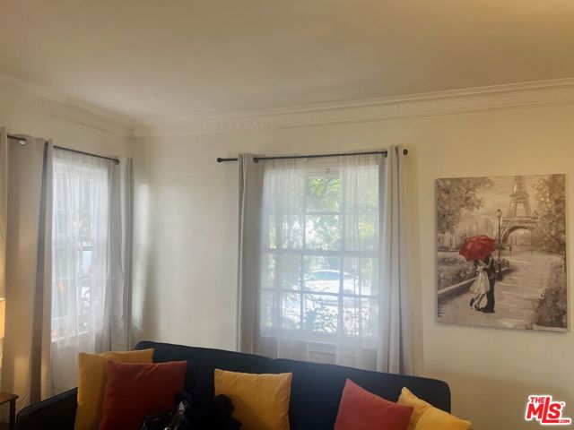 Welcome to this Serene and peaceful building with old charm and lush gardens! Bright and airy unit with lots of windows. This one bedroom unit is Furnished with taste. Bedroom overlooking the courtyard. Hardwood floors throughout. Lots of closet space. Large balcony overlooking the beautiful front yard. Walking distance to Shops, Restaurants, Gym and Cedar Sinai Hospital. Just bring your toothbrush 🙂 Short Term Leases avail for $3,450 per Month. Compare to Airbnb (much less)! Laundry on Site. Easy to show. Parking avail upon request. Good credit is essential.