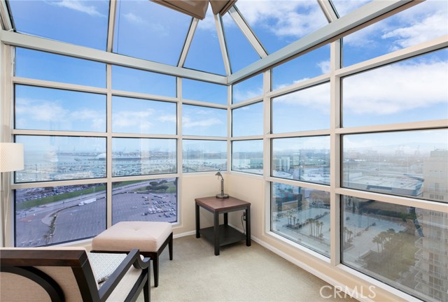 Rare ocean view PENTHOUSE home at the top of the HarborPlace Tower. With stunning ocean facing views from every room you will feel like you are on top of the world. This is not your typical condo. With nautical architectural hints throughout, you get the feeling of being on a cruise ship. Technically a two bedroom unit, there is also an office/den area off the living room accessing the second balcony. Large primary bedroom suite has solarium overlooking the Queen Mary and out to Catalina Island. Very cool, hidden small workshop area at the back of a hall closet that you will appreciate having in a condo. This very special property has been upgraded and is ready for you, but it is also a tremendous opportunity for someone wanting to add their own remodeling and personal design touches. HarborPlace Tower is a perfect blend of downtown city chic and beach cool. This home will put you right on top.