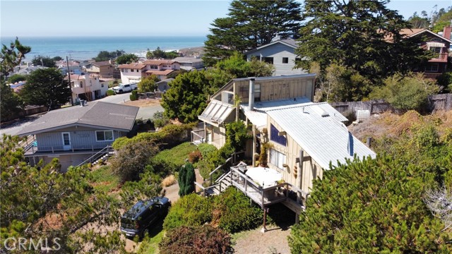This Eclectic Beach House sits just above the Marine Terrace and has some amazing ocean views from its large, oversized five lot parcel. Completely South-Facing this location draws in the warmth and sunshine. The home offers two bedrooms, two bathrooms, and a bonus room. It has a wood burning stove, vaulted wood ceilings, and two amazing ocean facing decks. The yard area is immense, part of it is fenced for a garden. This property lies above street level, enhancing the ocean views and looks down Emmons Rd towards the sea. It is a close walk to the Fiscalini Open Space trails and two beach accesses. Here is a golden opportunity full of possibility in a dream worth location. The living space has not been measured and maybe larger than what is quoted.