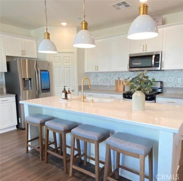 2 Two-Story Home offers 2,191 sq. ft. of open living space- 4 Bedroom, 2.5 Baths, spacious Great Room, plus Loft and 2 Car Garage. LARGE UPGRADED GOURMET KITCHEN includes island, stunning quartz countertop with marble mosaic backsplash, white Shaker-style thermofoil cabinets throughout with plenty of storage space, and stainless-steel Whirlpool range, microwave hood and dishwasher. Generous Primary Suite with over-sized walk-in closet, upstairs Laundry Room and multi-purpose Loft. Includes upgraded Shaw luxury vinyl plank flooring on the first floor, waterproof laminate stairs, loft and master suite. 9 ft ceiling on first floor. Smart home, Schlage programmable front door, tankless water heater and so much more. lease Solar panels for $90/ month with option to buy. TEXT LISTING AGENT, 2HRS BEFORE SHOWING.