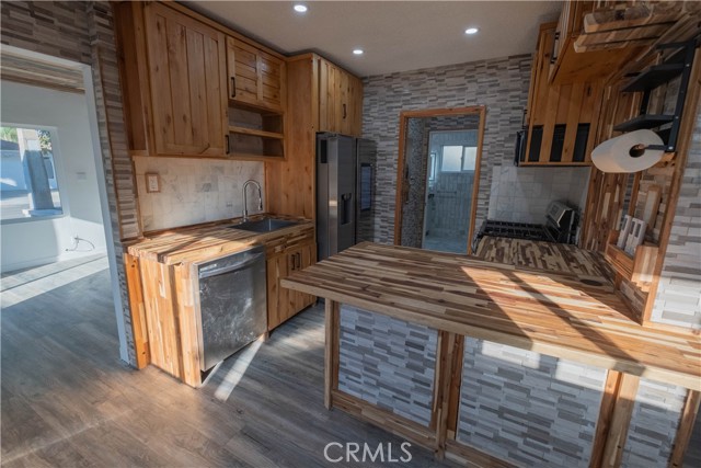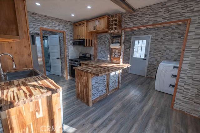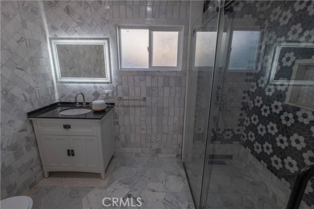 This charming 3-bedroom, 1-bathroom house has been completely renovated with top-of-the-line upgrades. This residence offers new flooring, new windows, fresh paint, high-quality knotty alder wooden cabinets, stone marble tiles, modern appliances, and more. The interior has been treated to an all new modern and simplistic paint job and laminate wood-like floors. The kitchen includes wooden countertops and knotty alder cabinets, a built-in wine rack, and new appliances including washer and dryer with a 2 year warranty. The restroom is adorned with stone marble tiles on the floors and bath areas, LED mirror, sliding glass doors, and a LED rain shower with body jet and thermostatic valve creating a spa-like ambiance that is both elegant and relaxing. Four split heater/AC units throughout the home providing energy-efficient heating and cooling to different rooms.The house has been upgraded with a new gas line, copper water line, and electrical MC conduit, ensuring safety and efficiency throughout the property.