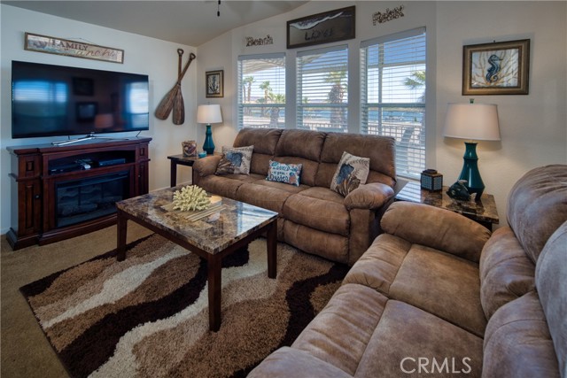 This RIVERFRONT manufactured home built in 2015 sits on the Colorado River in the lovely city of Earp. This 55 plus community is one of the most unique mobile home parks with just 184 units in it. Retire in style and pay only $425 a month for space rent in this community of Bermuda Palms. The seller, who works in the construction industry, spared no expense when upgrading the home. For starters, the walk-in shower tile and kitchen tile were both over a $5,000 investment. The workmanship is superb! Electricity in this area is super low at 8 cents per Kwh and will be even more cost effective with the A/C unit that was installed in 2015 and added yet another $6,500 investment. The property comes sold with all the furniture you see in the photos that was about $7,000 from Ashleys furniture. The exterior is also highly upgraded with another $15,000 in Trex decking, skirting and a carport cover. If you want to store or dock your boat in this community it is only $40 a week for a boat dock or $10 a day. Storage is $50 a month for a 10 x 40 space. This is truly the BEST PRICED way to retire at the river!