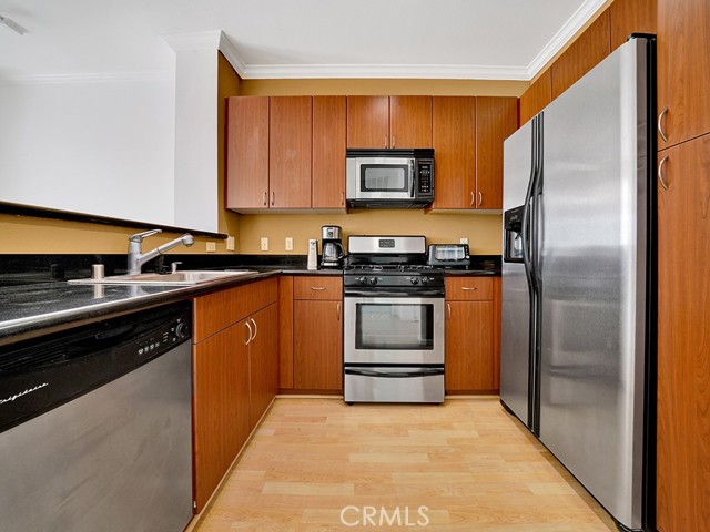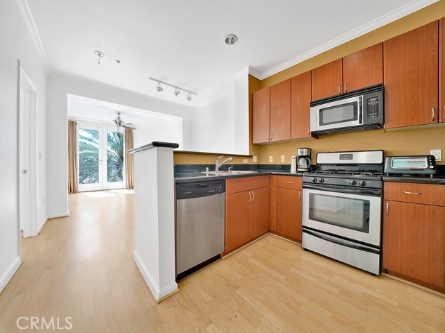 Welcome to the Stadium Lofts located in the heart of Platinum Triangle. This one bed/one bath condo has been updated throughout with wood floors, Stainless steel appliances, washer and dryer and light fixtures throughout. This unit is located on the top floor of the property and has views of the Angel Stadium. The orientation of the unit provides lots of natural light to both the living room and bedroom. The outdoor patio is covered and not in direct sunlight which is great during the summer and fall months. The bedroom has a walk in closet, walk in bathroom and custom light fixture along with access to the balcony. The assigned parking space is on the same level of the unit and is close to the elevator as well so guests do not need walk too far. The amenities in this community features a pool and spa, a fully equipped fitness center, sauna, spacious clubhouse that includes a shuffleboard and pool table, full kitchenette, plenty of tables making it perfect for entertaining and special events. This condo is conveniently located near Disneyland, Angel Stadium, the Honda Center, restaurants and shopping and freeways.