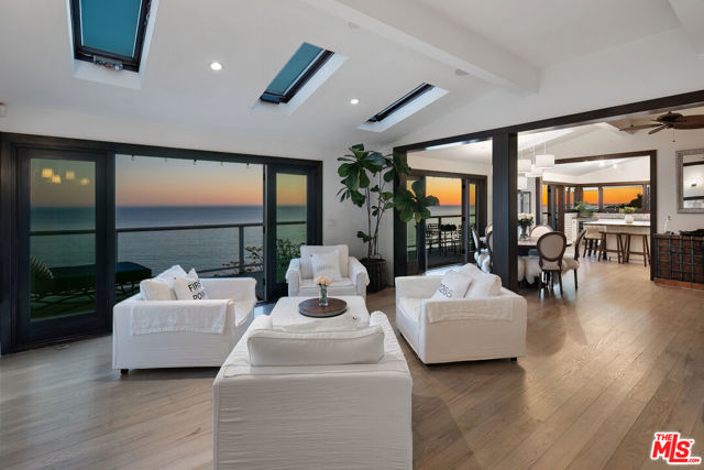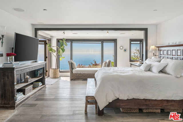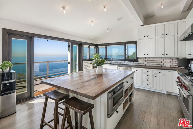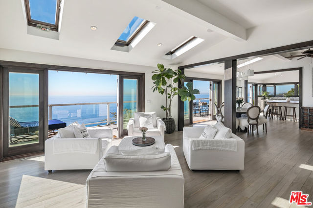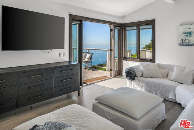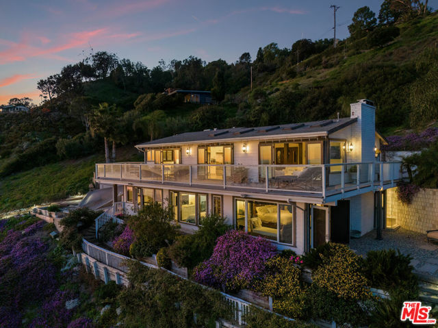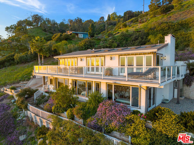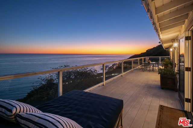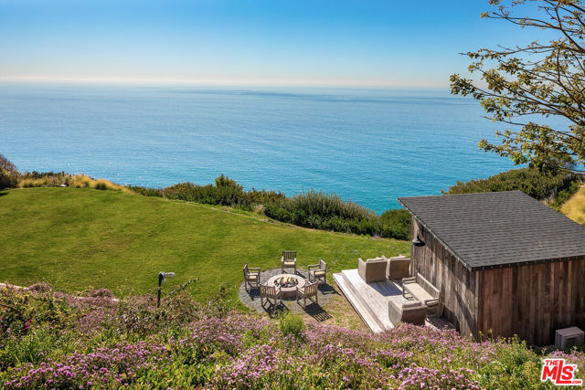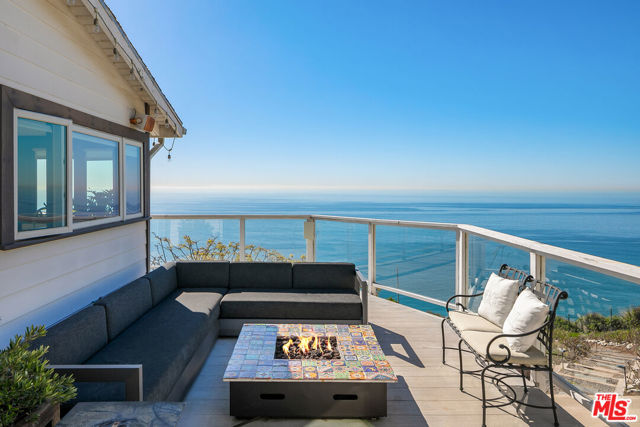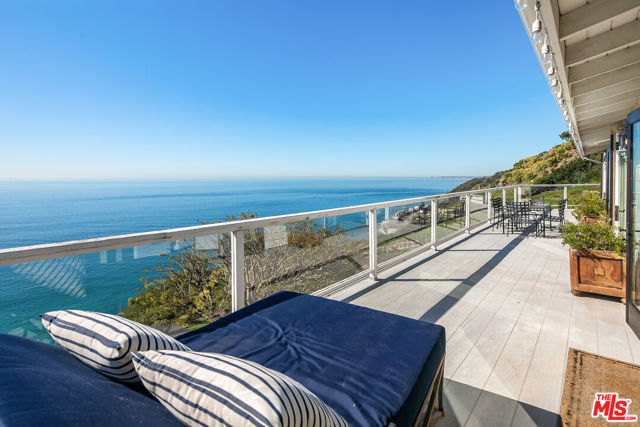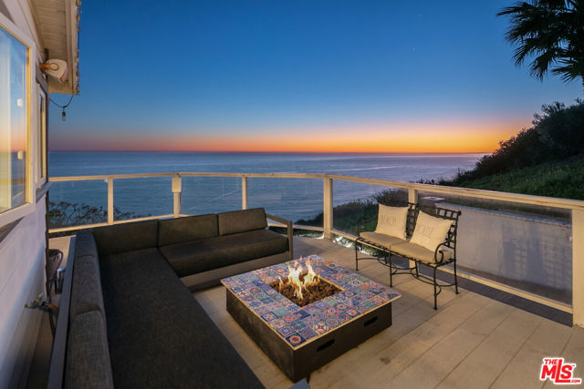 Located on a coveted bluff in the Big Rock niche of Malibu, this amazing opportunity offers breathtaking, head-on ocean views, complete privacy, and a recently remodeled beach house with all the modern amenities. The home exudes a hip, beach chic vibe with an open floor plan, featuring a fabulous kitchen, living room, dining room, and a den (or family room). EVERY room on the main floor offers panoramic views of the Pacific Ocean, including a full-length deck where you can relax on comfortable couches while enjoying sunrises, sunsets, dolphins playing, and views of Dume, Catalina, the South Bay, and the beautiful Queen’s Necklace stretching to Palos Verdes. The lower level features the Primary suite, 3 additional bedrooms and an office. The primary suite feels like a spa with a cozy fireplace, two walk-in closets, and a luxurious bath with dual vanities. A special glass steam-shower with ocean views opens privately to the impressive patio area with an 8-foot cedar tub and custom fire pit overlooking the Pacific. Steps leading down to a romantic patio with a coral tree providing a perfect canopy for outdoor dining and entertaining. There is a gigantic, grassy lawn for sports or just relaxing. Also includes ample parking for multiple cars – unique for Malibu! Not only does this property offer a tranquil escape, but it also provides the advantage of being close to Pacific Palisades, Santa Monica, and other Westside areas, while still being just minutes away from central Malibu. What sets this property apart is the absence of any neighboring homes in sight. As an added bonus, this property comes with current plans for expanding the size and style if desired. The visionary design by Architect Doug Burdge ensures that every detail is thoughtfully considered. Property is available for lease fully furnished.