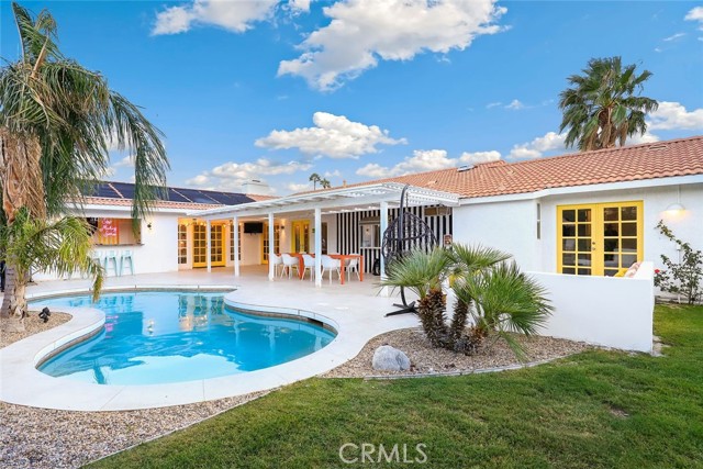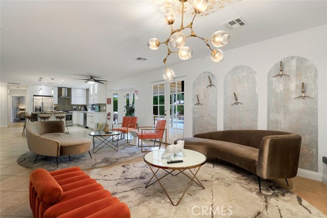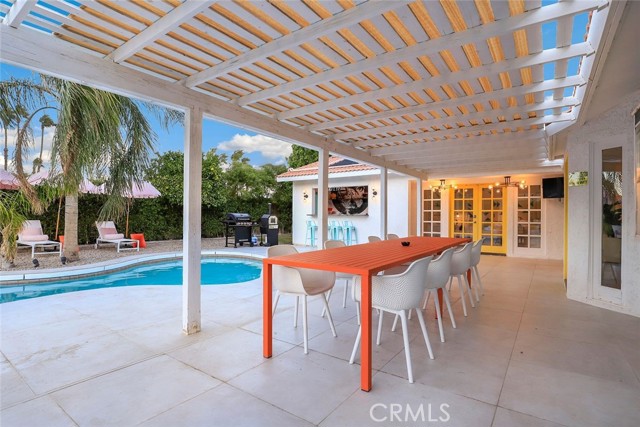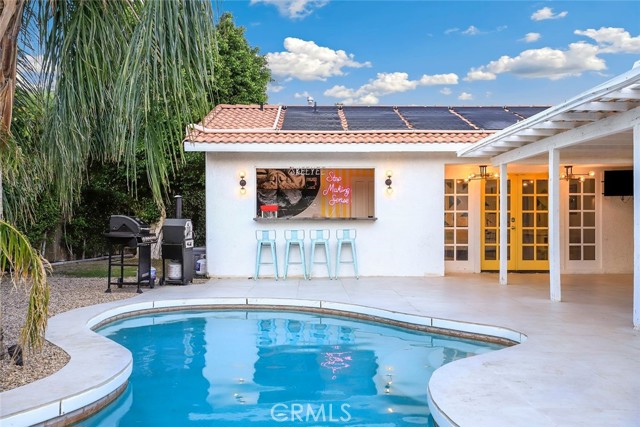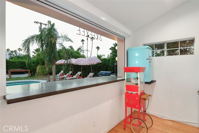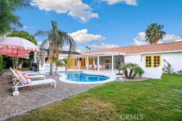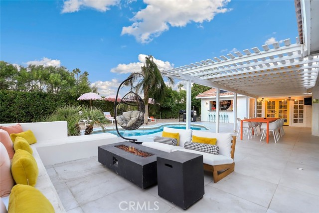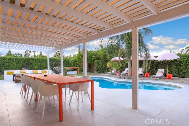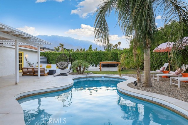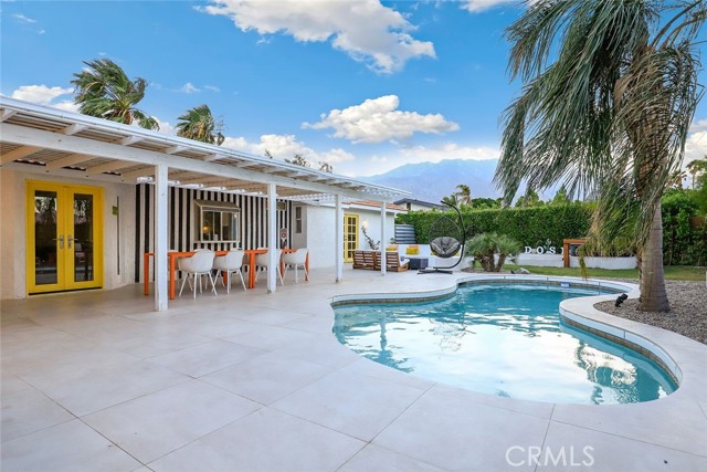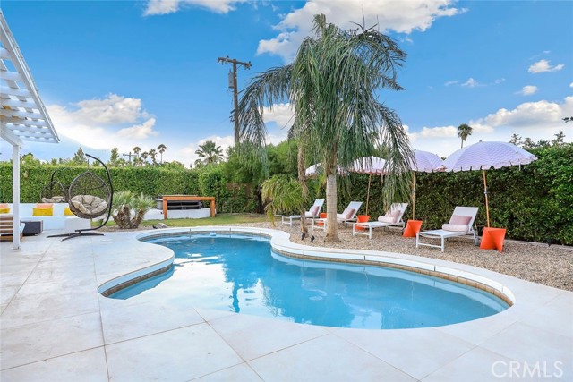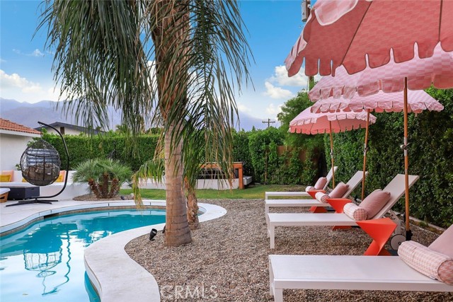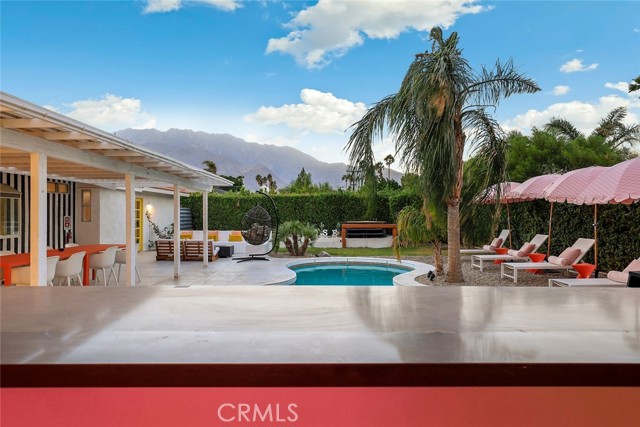 RARE OPPORTUNITY- TURNKEY- All furniture, decor and supplies are included in the price and can be part of the mortgage for the new buyer. Unique opportunity to own a property designed by Maxymalist designs featured on CBS show STAYCATION 2023 for their unique design and architecture. Short term rental can be allowed by the city by joining the wait list. Get into the wait list and grandfather in while the list is small! This 4 Bedrooms 3 Bath home has the potential to add another bedroom to increase occupancy and rental income( must verify with the city). Owner is willing to share details, guidance on the rental seasonality and best practices for short term rentals once in escrow. Experience the epitome of California luxury living in this stunning celebrity estate. Featuring two resort-style primary bedrooms that open to a beautiful backyard, two uniquely designed bedrooms, and three full bathrooms. The backyard is a true paradise, complete with a full-size outdoor bar and breathtaking mountain vistas. You’ll be captivated by the exquisite pool surrounded by lush palm trees. Enjoy the elegant seating area with hammocks, a firepit, a S’mores maker, and an array of family games. Everything you see is included in the sale. Welcome to the essence of the Palm Springs lifestyle!rn*Potential buyer must do due diligence with the city of palm springs*
