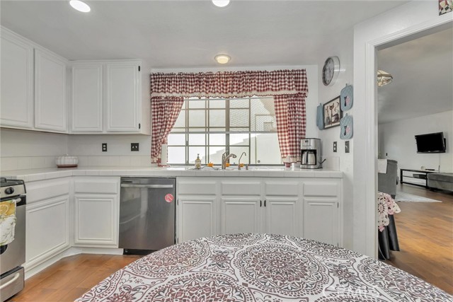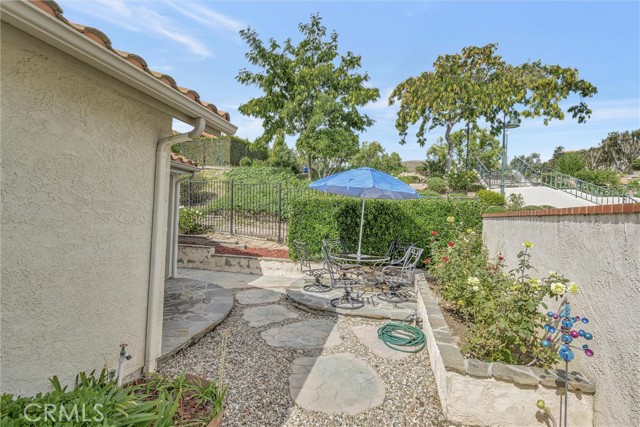 This is the home you’ve been waiting for! Move-in ready two bedroom, two bath single family home located in the sought-after gated community of The Fairways in Wood Ranch. Beautiful wood floors greet you as you enter into the open living/dining rooms. Lots of natural light stream in from the two sliding doors and big windows that lead you to the low-maintenance patio/garden areas. The eat-in kitchen affords the same beautiful floors with ample cabinets and huge pantry. Stainless appliances are an additional feature that accentuate the kitchen’s charm. Down the hall you will find the indoor laundry facilities hiding discretely behind louvered doors. Across the way is the secondary bedroom with a well-appointed vanity and bathtub/shower combo. To finish off this wing of the layout, you will find the second bedroom/office with a mirrored wardrobe. On the other side of the home, beyond the living area, is the spacious primary bedroom which includes a sitting area, fireplace and sliding door leading to one of the outside patios adorned with beautiful roses and greenery. The en-suite primary bathroom features dual sinks, bathtub/shower combo and walk-in closet. Enjoy a BBQ, coffee or cocktails outside on the additional patio of the yard. The home also has a two-car garage with direct access! Community pool/spa are adjacent to the home. Low HOA fees! The property is also situated close to local shopping and restaurants. Come on home!!!