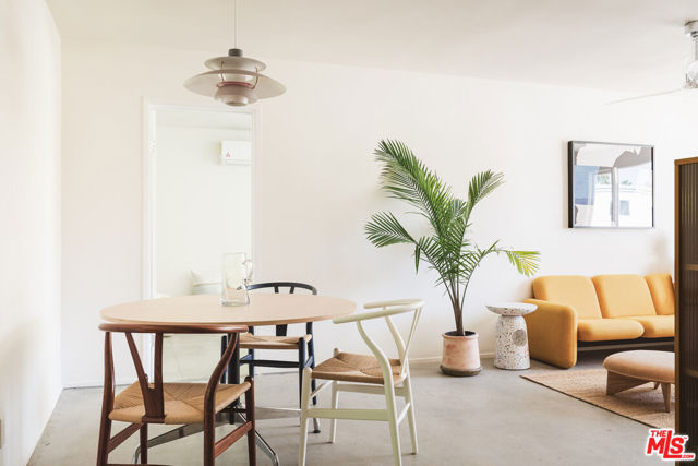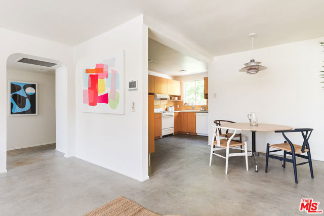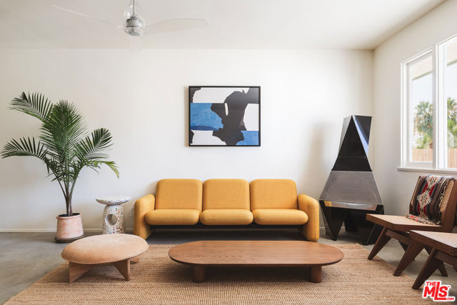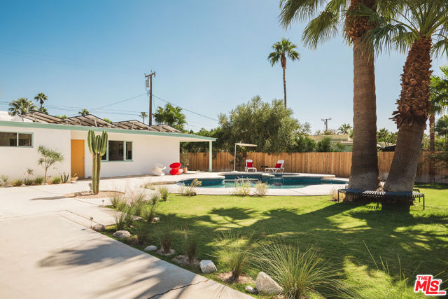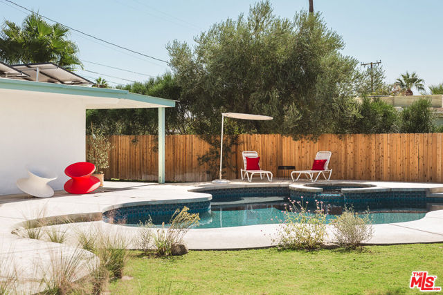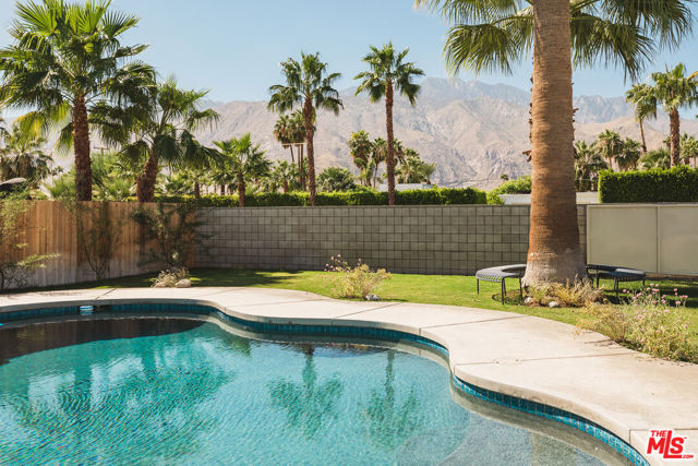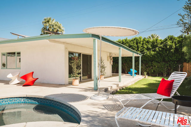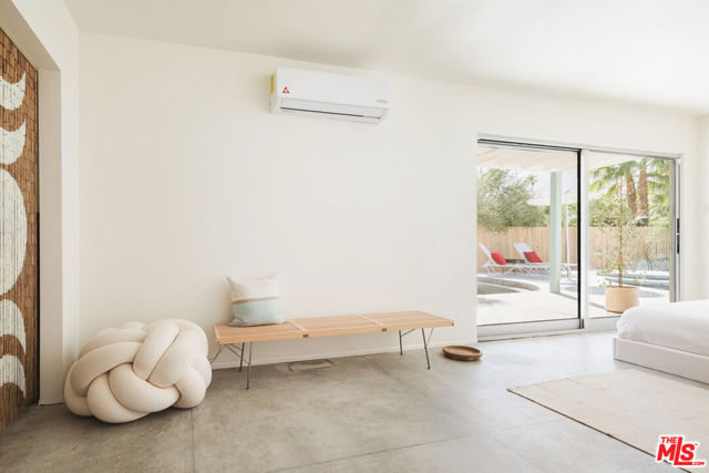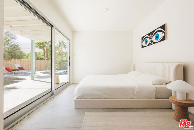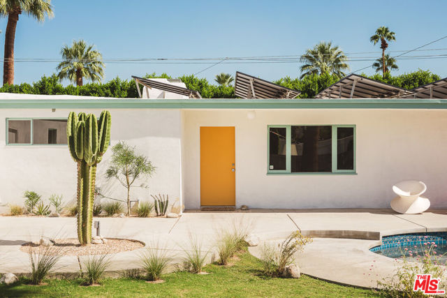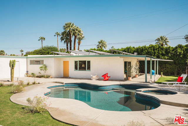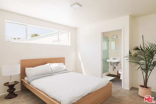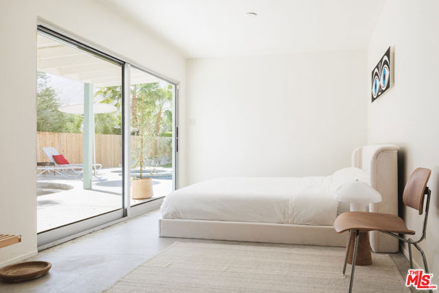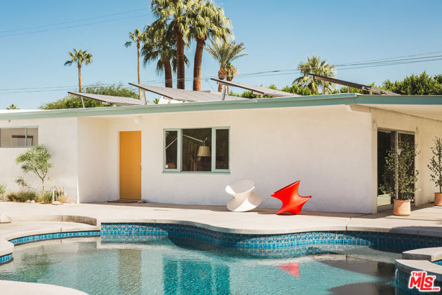 Bel Vista House, Albert Frey (1946). A rare and early single family home design by one of the most innovative architects of the American modern movement. The very first subdivision in Palm Springs to feature modern style houses and the sole Albert Frey designed housing tract. Only 15 of these homes were constructed, and just a handful of recognizable examples still remain. A recent rehabilitation has revitalized the spirit of this Bel Vista home with an austere and minimalist design vocabulary. Updates have been approached with the goal of honoring the elegant simplicity of Frey’s original design: aluminum countertops at the kitchen, a grid of 4×4 tiles in both bathrooms, and honed concrete floors throughout. Situated on a sprawling and private nearly quarter acre lot with newer salt water pool and spa- positioned to take full advantage of one of the best mountain views in the neighborhood. Frey anticipated the need for future additions to the original plan, allowing homeowners to enlarge the house on three sides without changes to the interior layout. This particular home saw the addition of a 4th bedroom and 2nd bath, as well as a covered patio to retain the shade of the original extended eaves. Furthering Frey’s ideas on harnessing natural elements for comfortable living- owned solar panels now generate electricity for the home. Ideally located in the highly desired Movie Colony East neighborhood, in close proximity to downtown Palm Springs.