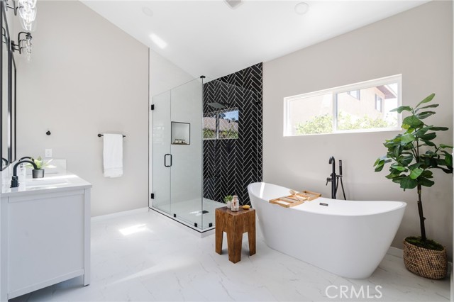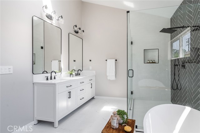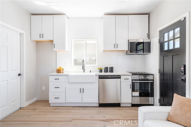 Amazing opportunity to own a brand new, ground up construction home in a great area of San Gabriel. This property features a 1,574 SF 3 bedroom 3 bathroom main house as well as a 321 SF 1 bathroom studio ADU with full kitchen and also provides a fully insulated and finished 2 car garage to either park cars or expand the ADU space.rnAll construction was completed with full city sign off, approval and inspection.rnThis amazing home with ADU property sits on a massive 7,411 SF lot.rnThis home was designed as a modern farmhouse. As you walk up to the front door you immediately notice the large wrap around redwood porch/deck and enter in through the front door to your grand foyer and massive vaulted ceiling with skylights. You immediately notice the open concept great room with living room, dining room and kitchen all open with sliding door access out to the deck making this home a spectacular space to entertain.rnEach bedroom has its own bathroom and each bathroom features a common theme of quartz counter tops, herringbone style black tile accent and high end finishes to give you the modern farmhouse feel throughout the house.rnThe primary bathroom features a large soaking tub, oversized shower, dual vanity and plenty of space to create your private oasis.rnThis home features smart light switches, nest thermostats, high efficiency HVAC systems, tankless water heater, and comes prewired for data service throughout the house and ADU. rnAlso included is a wine cellar/basement space that could provide many uses and makes for unique space in the home.