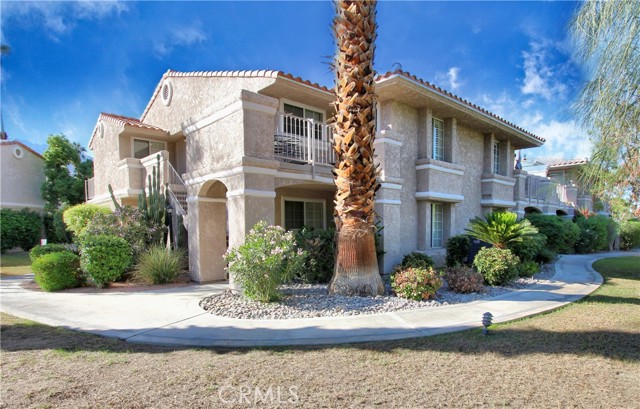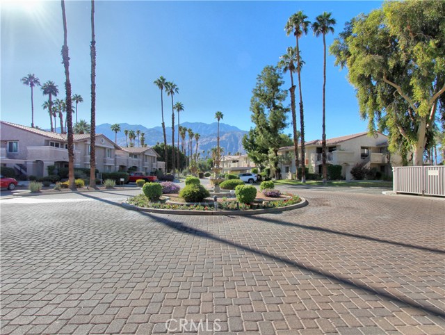 Welcome home to the Mesquite Country Club of Palm Springs! This upper level condo is absolutely gorgeous, as it has been completely remodeled with upgrades galore and comes FULLY FURNISHED! Featured are: Almost 1200 sf. of living space; 2 bedrooms; 2 bathrooms; Living room with sliding door leading out to the patio that offers amazing views of the mountains to the West; Dining room; Kitchen (completely remodeled with new two-toned shaker cabinetry – complete with organizers, pull outs, pots/pan drawers, and more; quartz counter tops, stainless steel appliances, tile backsplash, recessed lighting, and more); Guest bedroom has it’s own sliding door leading out to the secondary deck that faces East; Guest bathroom that radiates black, white, and brushed gold modern elegance with luxurious fixtures, vanity, lighting, bathtub, electric fireplace, and tile design/accents; Primary bedroom features tall ceilings, another sliding door leading out to the balcony with views of the mountains, and flows into the primary bathroom; Primary bathroom has upgraded vanity, large closet, bidet toilet, and walk-in shower with high end shower panel system. Seller’s estimate to have almost $175,000 in upgrades/furnishings alone. Upgraded features include: HVAC system, Water heater, Wood tile flooring with upgraded sub-flooring beneath, wood shutters, ceiling fans, “fandeliers” (with speaker systems!), interior paint, interior doors, newer furnishings, video doorbell, and more! Too much to list! This complex owns the land, NO land leases! The HOA fee includes water, trash, basic cable/internet, community pool/spa, tennis courts, pickle ball courts, covered parking, and landscaping/upkeep of common grounds/gates/etc. This is an amazing primary residence, vacation home, or rental property! Approximately 2.5 miles from downtown Palm Springs and close to all of the amazing events, entertainment, festivals, sport/concert venues, and more that the desert communities offer throughout the year – the location is almost as fabulous as the condo itself! Come and see for yourself – your desert oasis awaits!
