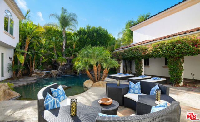 Dramatic Spanish Colonial villa set behind gates on picturesque Los Feliz Blvd. This impressive and large estate encompasses approximately 9,600 square feet on close to half an acre. Built in 2005 the home features 7 bedrooms and 8 bathrooms with mahogany wood and marble floors and beautiful detailing throughout. A grand two-story entry opens into large public rooms including the spacious living room with fireplace, formal dining room, family room, beautifully paneled library and gourmet kitchen with breakfast area. The home is perfectly scaled with a wonderful floor plan featuring five bedroom suites plus the spectacular master suite with sitting area, fireplace, huge bath and dressing room. A media room, gym and two wet bars are also offered. The impeccable and very private grounds feature a pool and spa with waterfall. A gated entry off of Vermont Ave. includes a four-car garage.