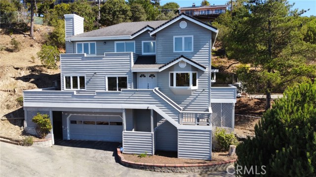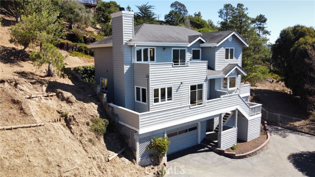 Home With A VIEW and extra LOTS! At the beginning of Pine Knolls Drive, an inclined driveway leads you to a space where the views are quite incredible; you are in your own sweet world looking out over and through the trees, above the west village and along to the sea. It is a unique Cambria view that only a few homes share. The home’s main level has a large kitchen and attached breakfast room, adjacent dining room with a big view, living room with fireplace and a family room. There is also a bathroom, laundry room and wonderful view decks off the living room and kitchen. Upstairs are three lovely bedrooms and two bathrooms. The primary suite has a large walk-in closet, ocean view and ocean view deck. The two guest bedrooms have vaulted ceilings. Additional amenities include a dumbwaiter and a wine bar area off the living room. On the first level is the oversized, two car garage. It has a workbench and storage room. This home comes with two additional estate size lots . Welcome to Pineknolls Estates where you are walking distance to both the east and west villages of Cambria.