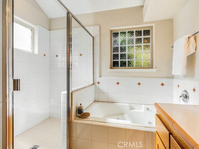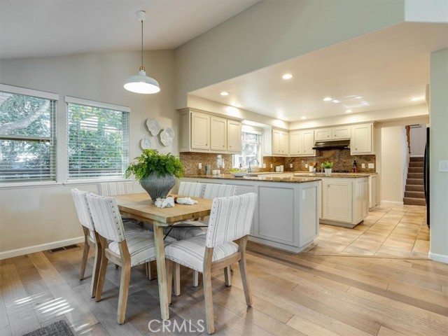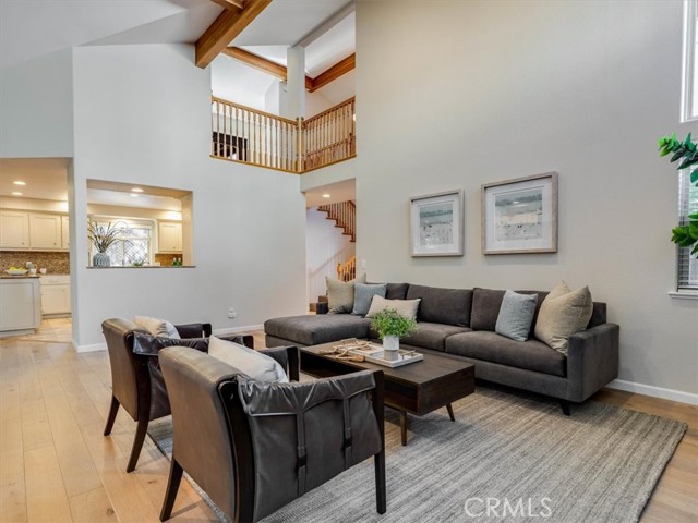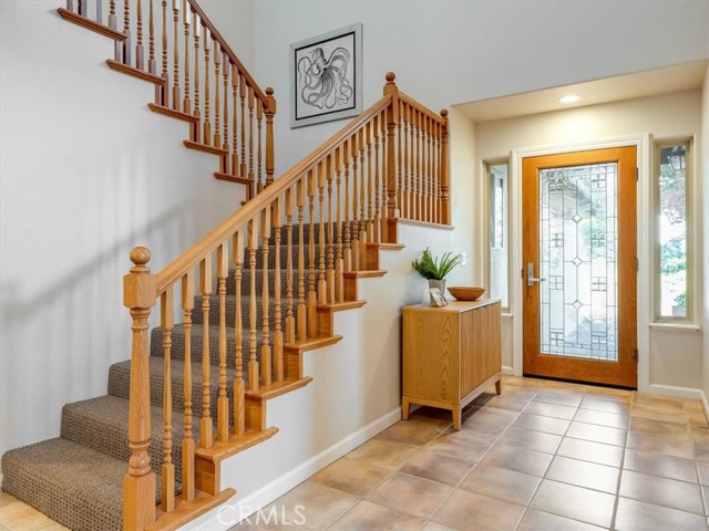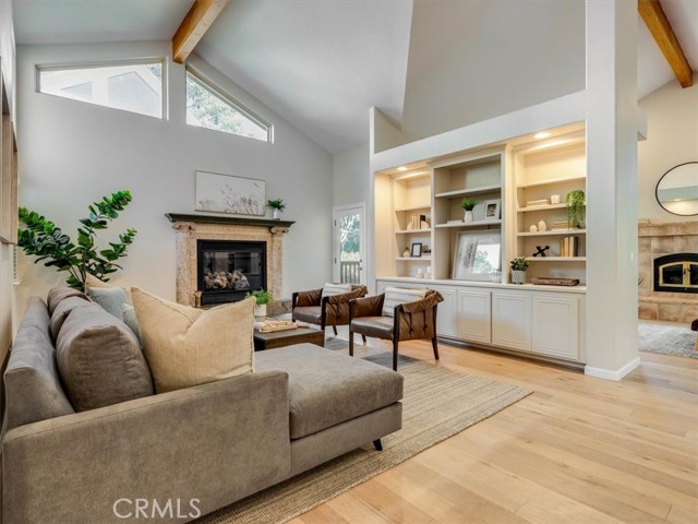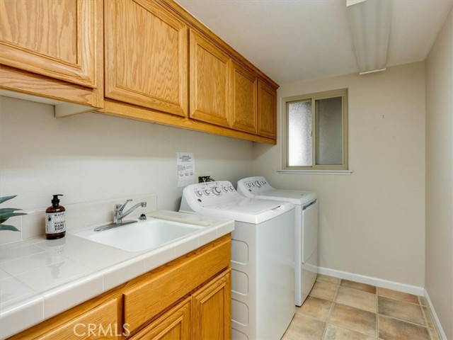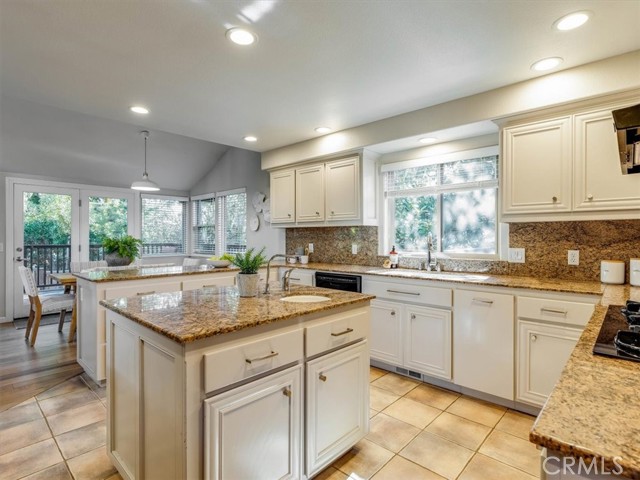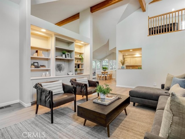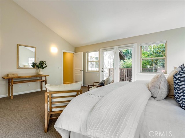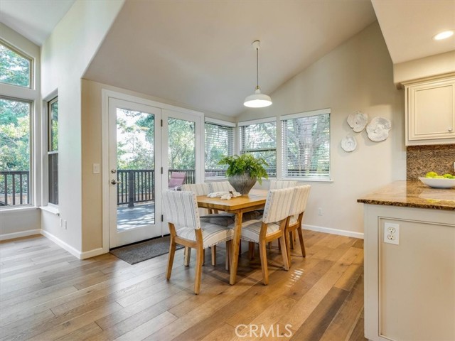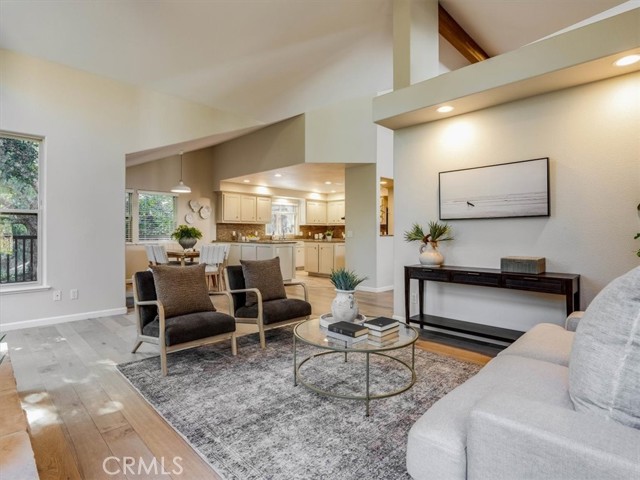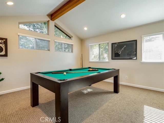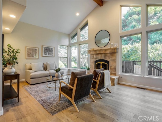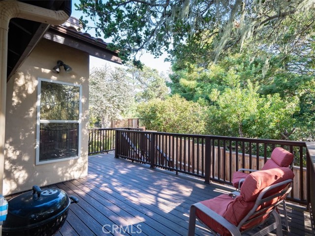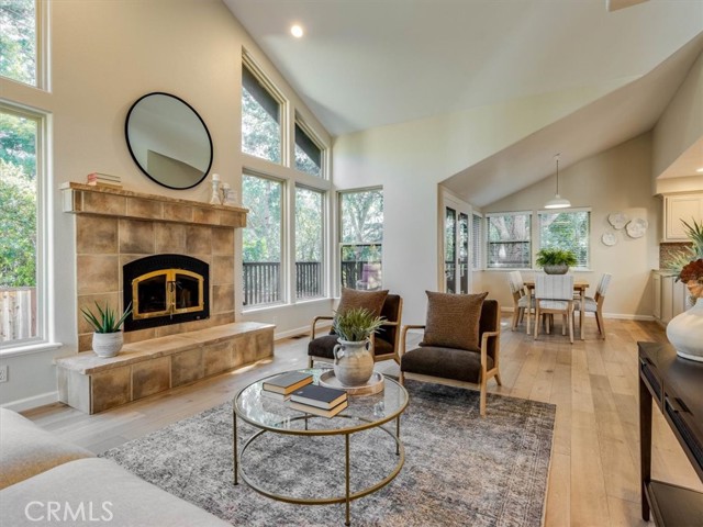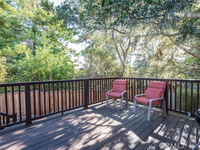A refreshingly beautiful home greets you the minute you open the front door of this Leimert Estates address. The spacious entry guides you to a floorplan that is both open and bright. Every room has a distinct area for furnishings while the variety of vaulted angled ceilings help define the function and beauty of each room. At entry level are the living room, dining room, kitchen, family room, primary suite, guest bedroom, bathroom and laundry room. A large deck overlooks a peaceful backyard encompassed by greenery. In the living room, the fireplace is flanked by windows that soar up to the two story vaulted ceiling, letting in filtered sunlight. The living room is open to the dining room and kitchen yet it is a distinct room of beauty. The dining room has access to the deck and backyard. In the spacious kitchen are granite counters, two sinks, numerous cabinets, two ovens; it’s all here and its lovely. The family room has an additional fireplace, a wall of built-in cabinetry, and a door to the backyard. The tall, vaulted ceiling is enhanced with a center beam. Also on the first floor is the primary bedroom. It has windows and access to the back deck, vaulted ceilings, three closets and a bathroom with both shower and bathtub. Upstairs are two additional guest bedrooms, a full bathroom, and an open room that currently has a pool table. It also would make a great office. There is an EV fast charge plug-in for an electric vehicle in the two car garage. This home is licensed to be a vacation rental.