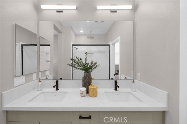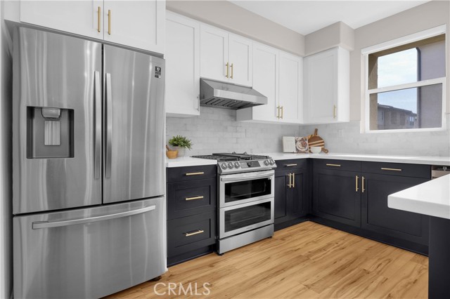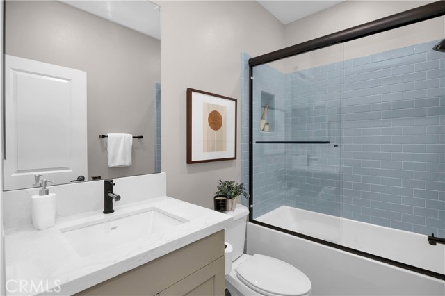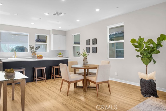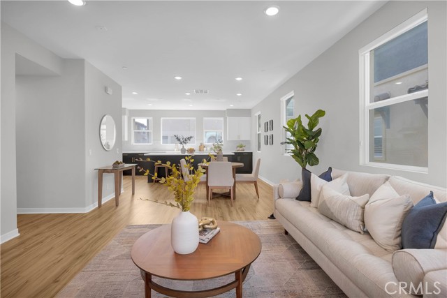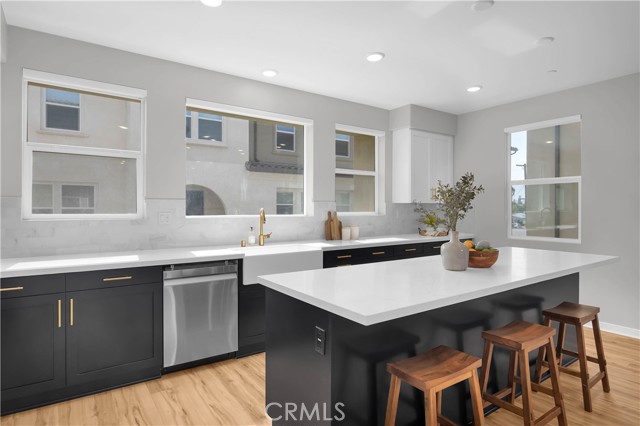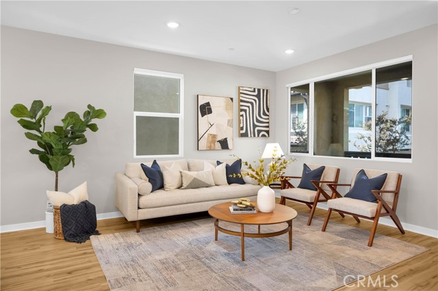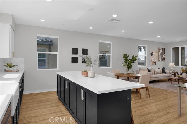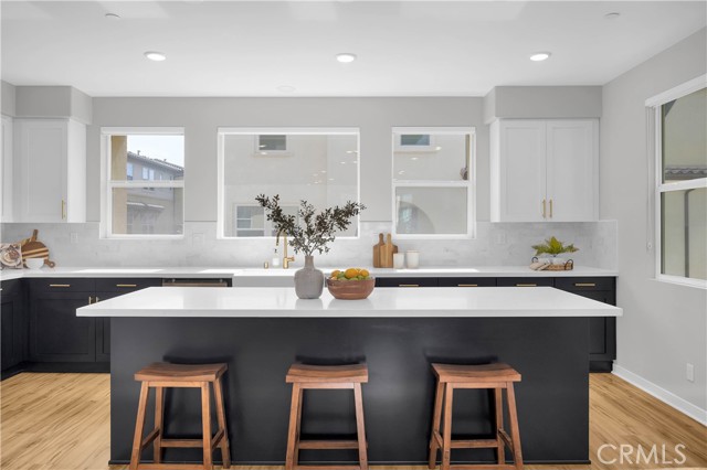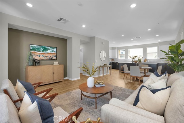 This gorgeous, end unit townhome is located in the highly desirable Indigo Walk community. Built in 2021, this home has $66,000 in upgrades! After parking in your large 3 car garage, wonder upstairs to find an open concept living room and kitchen with lots of natural light. The kitchen has maple cabinets, sleek gold hardware, beautiful quartz countertops and high-quality stainless steel appliances. Both bathrooms upstairs have subway tile enclosures, beautiful vanities and upgraded fixtures. Other features include a Lennox Pureair Air Purification System, tankless water heater with Falsken Heater Treater filter, and patios off of the living room and primary bedroom. Low HOA and no Mello Roos! Located close to The Source, Buena Park downtown & mall, Disneyland and Knott’s with east access to the 5 and 91.