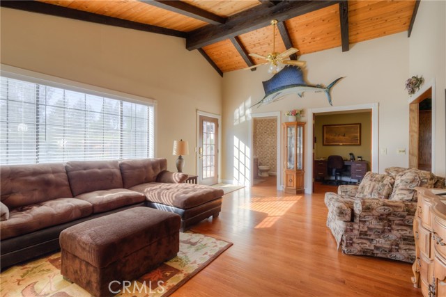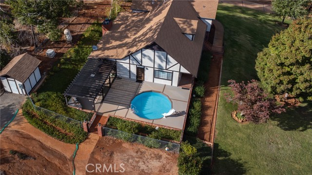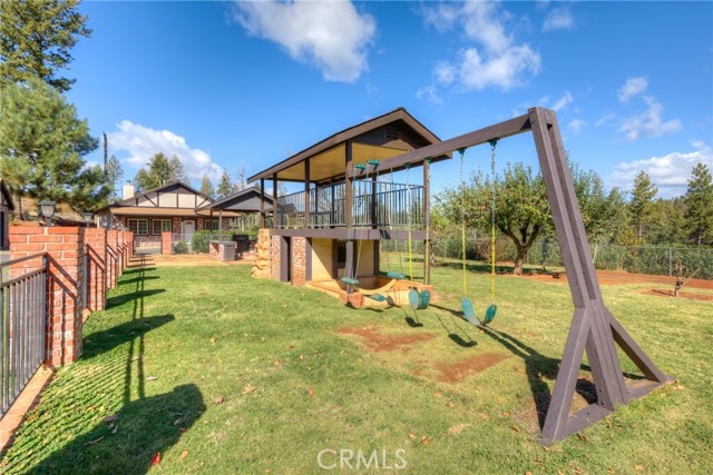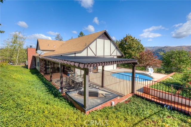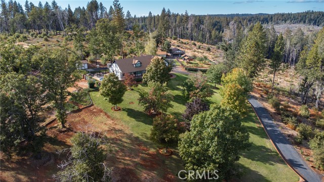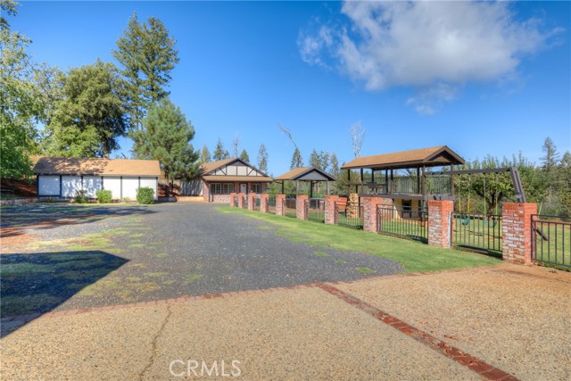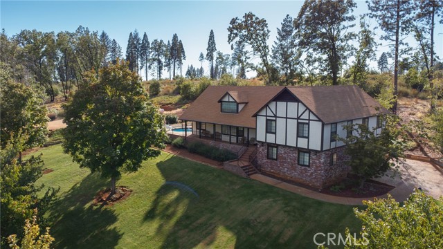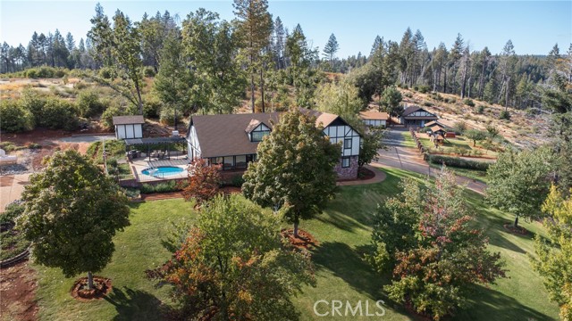 Nestled in the heart of a vibrant mountain community abundant with outdoor adventures, this 3-acre parcel offers an idyllic escape just half a mile up Coutolenc Road, a short distance above Paradise. Notably, it shares a driveway with the adjacent 14283 Coutolenc (MLS#SN23192896), also currently available for purchase. As you approach the property, a sprawling lawn adorned with trees displaying vibrant fall colors greets you, setting the stage for the ultimate summer oasis. Imagine hosting slip and slide parties amid the tranquility of this picturesque setting. The main residence, exuding the charm of a Tudor-inspired design, spans 3,294 square feet and comprises 4 bedrooms, 3.5 bathrooms, and a couple bonus rooms. Its meticulous craftsmanship boasts oak hardwood floors and vaulted ceilings, lending an air of charm to the living spaces. Step off the wood beam den and onto the inviting pool patio, complete with a built-in BBQ area, perfect for hosting gatherings and creating lasting memories. Tucked away at the back corner of the property, the guest house features a rustic tongue-and-groove ceiling, complemented by a stone hearth at the wood-burning stove, evoking a cozy and inviting ambiance. Spanning 1,148 square feet, it encompasses 1 bedroom, 1.5 bathrooms, and an additional bonus room, providing ample space for relaxation and comfort. In addition to the two dwellings, the property also features a Cummins whole house generator, an 18’x30′ workshop and a 16’x24′ shed structure, ensuring ample space for storage and hobbies. The gated play area is a delightful addition, complete with a play structure, outdoor BBQ, hot tub, and an array of flourishing fruit trees, offering the perfect setting for endless hours of outdoor enjoyment and entertainment. It’s worth highlighting that this property shares a driveway and private well with 14283 Coutolenc and also borders 160 acres of forest land owned by the PID water district, adding an extra layer of tranquility and privacy to this picturesque mountain retreat. Don’t miss the opportunity to make this extraordinary property your mountain sanctuary, where every day feels like a getaway in nature’s embrace. Come and experience the endless possibilities this stunning retreat has to offer!