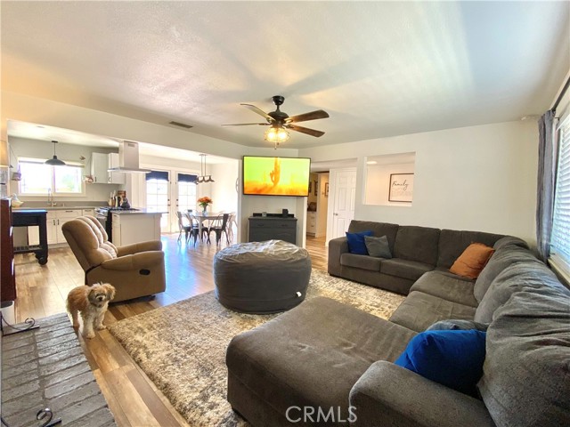 A modern ranch style home on 1 acre of fenced property is ready for its next owners! This home features 3 bedrooms, 2 full bathrooms, a bonus room that can be used as an office, den, playroom or guest room, as well as an updated kitchen with shaker style cabinets, beautiful quartz counters, a large rolling island and a large pantry. The laundry room is located inside as well and offers tons of storage for linens and cleaning supplies. Both bathrooms have been updated with shaker style vanities and quartz countertops. The open concept kitchen, dining and living room areas are central to the home’s layout and are perfect for entertaining friends and family year-round. The home is set back from the street, providing a large front yard with plenty of parking. RV parking is also available! The rear of the property is cross-fenced and ready for you to add your own special touches. rnA brand new roof cooling & heating split system with smart thermostat was installed July 2023. The septic tank and all appliances are less than 3 years old. Updated laminate flooring, lighting fixtures and ceiling fans throughout.