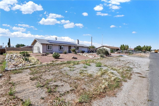 Beautiful 3-Bedroom Ranch-Style Home on Huge 18,000 Square Foot Lot in Apple Valley! Upgrades on this home include vinyl plank flooring and ceiling fans throughout. Living room w/ brick fireplace. Dining area w/ sliding patio doors for al-fresco dining. Kitchen w/ granite countertops & corner pantry. Generously-sized bedrooms w/ updated bathrooms. Private fenced-in patio area – perfect for entertaining! Tesla solar system. Central AC + heat. Fully gated lot. 2 car garage w/ plenty of driveway parking. Needs a little TLC to be the perfect home!