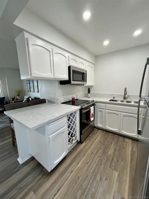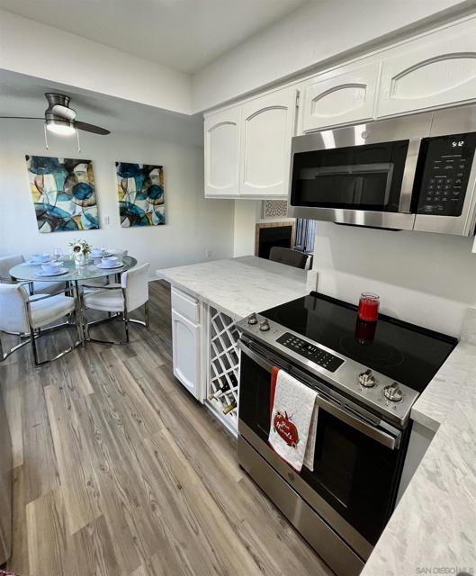 Move-in ready beach home! This 2 bed 2 full bath fully renovated condo has VIEWS in-unit LAUNDRY, A/C, 1 car DETACHED GARAGE and LOW HOA’s at $152 per month! There’s a fireplace in the living room and long balcony off the primary suite. The kitchen has white cabinetry, stainless appliances, farmhouse sink and beautiful granite countertops and barstool seating. This is an exquisite home ready for its new (3rd) owner! Close to shopping and a bikeride from the beach.
