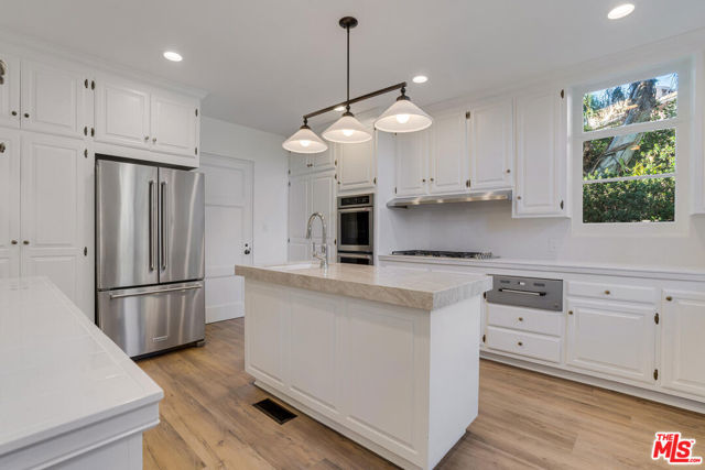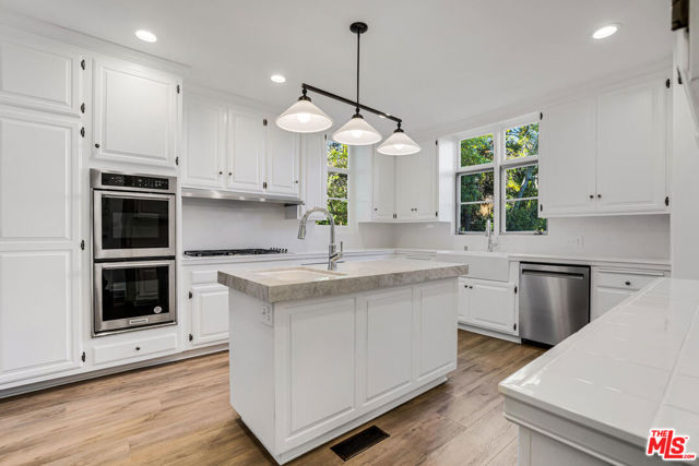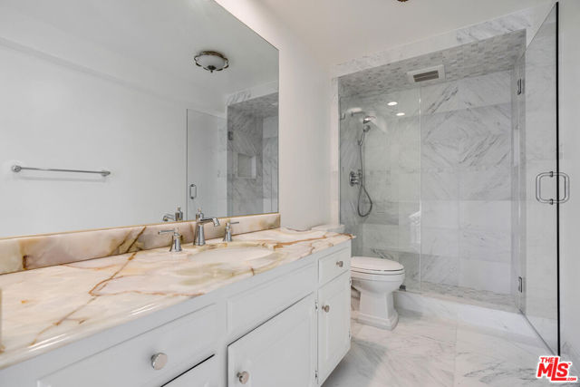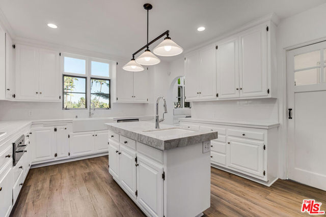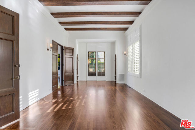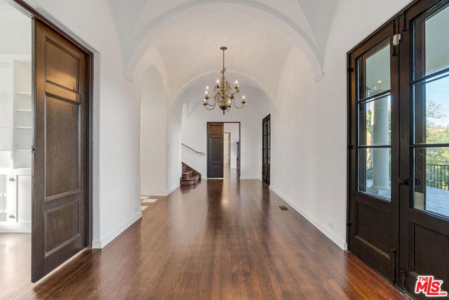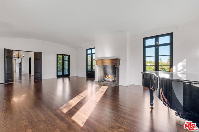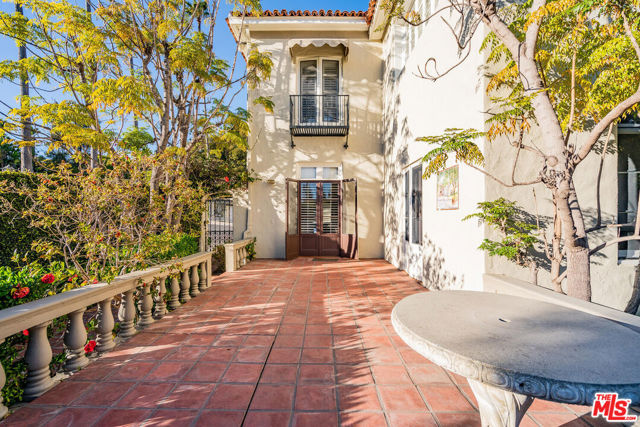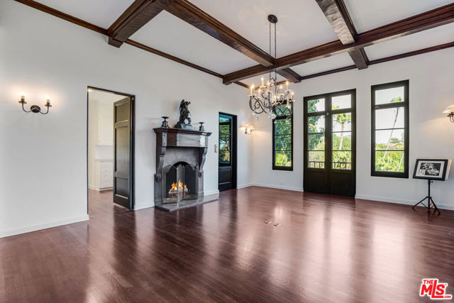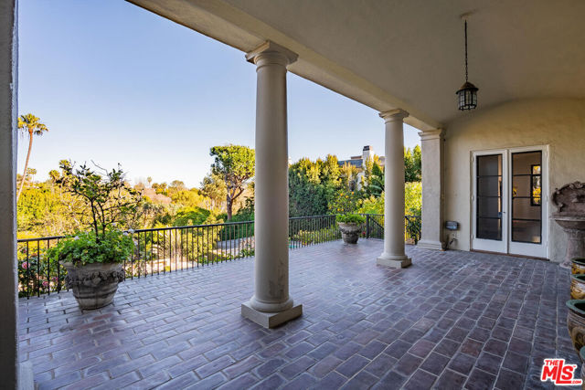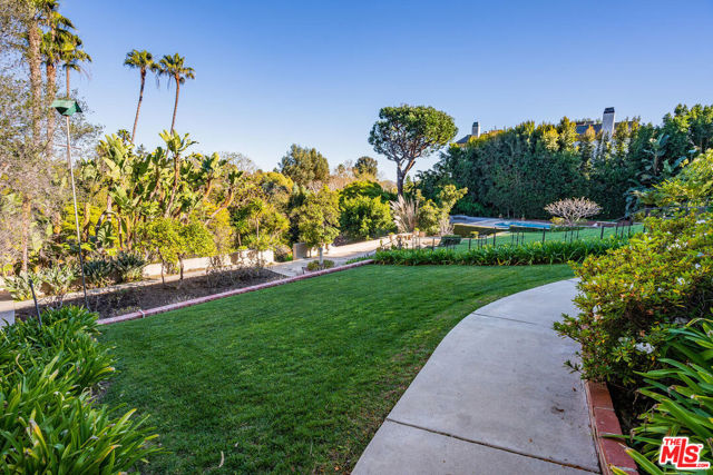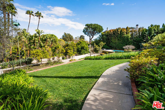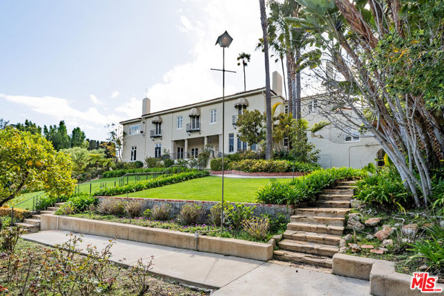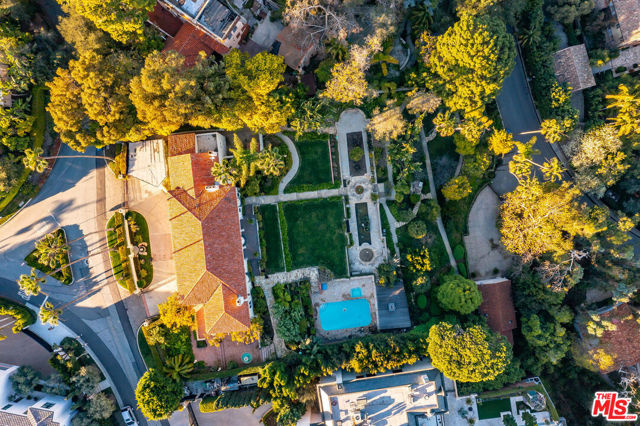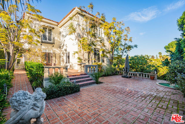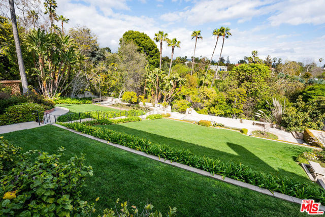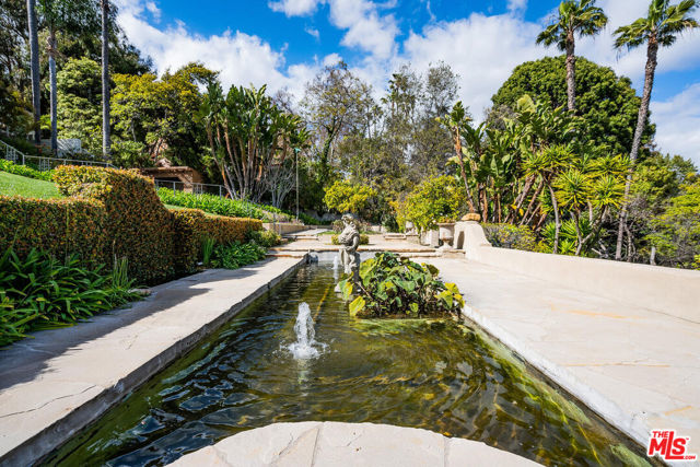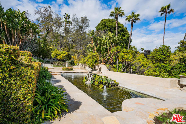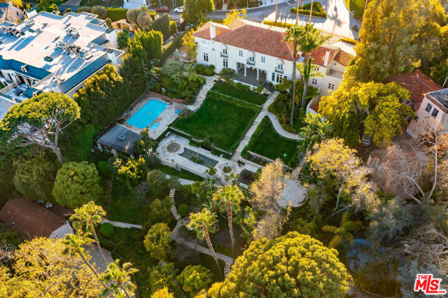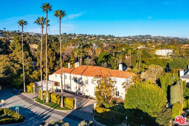 Just through the East Gates in Bel Air, on one of the most esteemed streets in the city, lies a timeless trophy residence that blends modern day living with classic sophistication. Sitting on nearly one acre of land and engulfed by lush surroundings, this traditional estate is enriched in history. Most notably, it was “home” to The Beatles, who famously lived at the residence during their very first North American Tour in 1964, where they performed at the Hollywood Bowl. Over 6,000 square feet of beautiful interiors, attention to detail, and gleaming hardwood floors are immediately on display as you enter through the homes main foyer. Flooded with natural light, the generous formal living room is appointed with a spectacular wood burning fireplace and transitions into an adjoining family room, all leading outwards to the property’s manicured grounds. The formal dining room exhibits exquisite original detail and connects to the fully renovated kitchen with Miele appliances. French doors throughout the home’s main level lead out to an inviting covered patio that overlooks the rest of the property’s grounds, that include a large swimming pool and spa, fire pit and entertainment area, multiple fountains, sensational gardens, and various alfresco dining/lounge areas. The home’s upper level is comprised of five ensuite bedrooms, including a voluminous primary bedroom suite with vaulted ceilings, walls of windows, and dual bathroom suites. The bedroom on the main level, is thoughtfully tucked away from the primary living and entertaining spaces of the home, and serves as the perfect maid’s or guest quarters. The property also has a two bedroom guest house with separate entrance that is available with the property. Truly a magical setting and rare opportunity to experience Bel Air living at its very best.