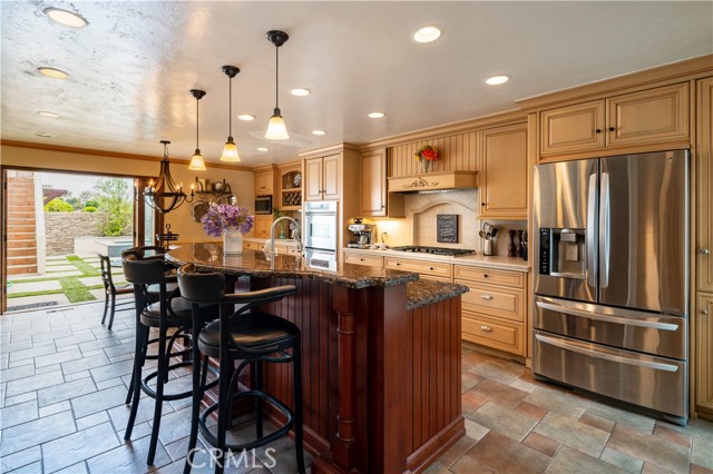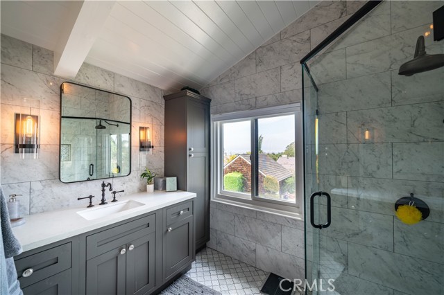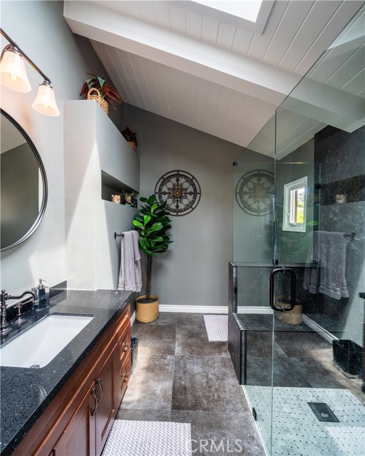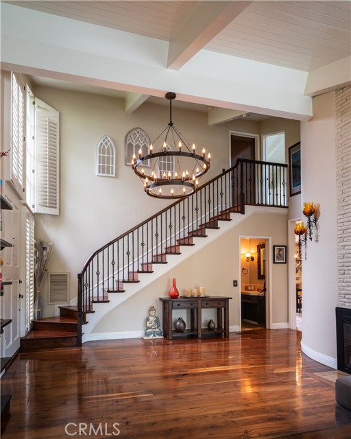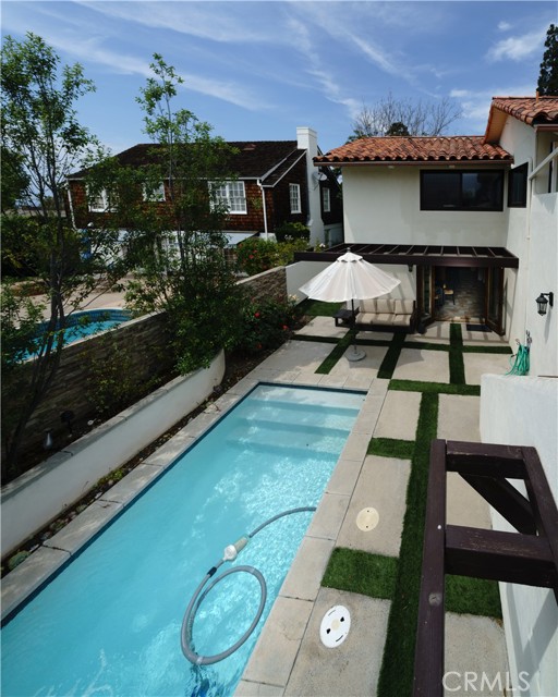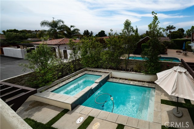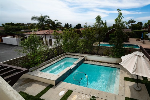 This charming two-story home features a large front courtyard,3 bedrooms ( one downstairs bedroom has a closet in the hall), and 3 bathrooms, in 2293 sq ft. There is a gourmet kitchen with granite countertops and stainless steel appliances, as well as an island with seating and a breakfast nook. There is a spacious living room with a fireplace, and a formal dining room all with vaulted ceilings. The serene backyard includes a pool and spa overlooked by a large patio off the main bedroom upstairs where you can lounge and enjoy the peek of ocean views and sunsets. The spacious primary bedroom includes a fireplace and high ceilings with a remodeled en-suite bathroom. The second upstairs bedroom includes skylights, a reading nook, and an en-suite remodeled bathroom. This lower Lunada Bay home is situated on a quiet cul-de-sac that provides both sanctuary and proximity to schools, shopping, and the picturesque bluffs of Palos Verdes Estates!