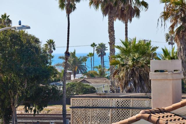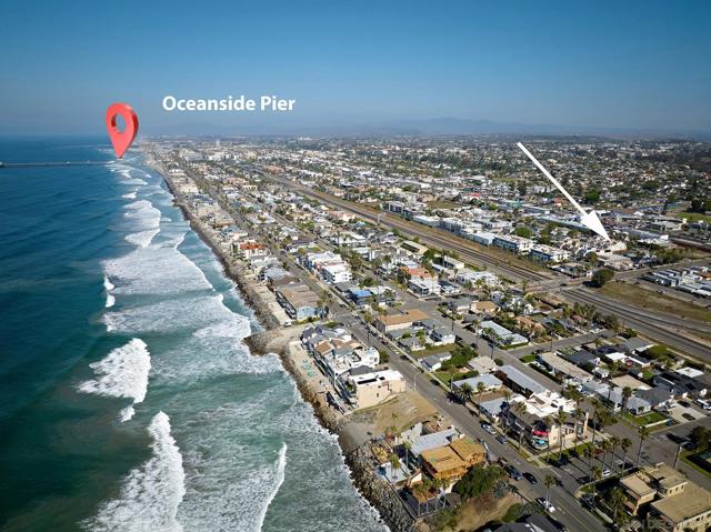 Seller will entertain offers between $1,799,888-$1,999,888. Combining ocean views, indoor-outdoor living spaces, & gorgeous finishes, this contemporary beach home with 3 fireplaces offers a wonderful opportunity to live just a short stroll to Oceanside’s acclaimed beaches, coffee shops, breweries, & restaurants. The 2-story living room with a wall of windows flows into the large dining room. The expansive kitchen features rich wood cabinetry, quartz countertops, travertine backsplash, and an oversized granite island. The primary bedroom offers a private view terrace, stone fireplace, & spa-style bath featuring a soaking tub with stone surround and walk-in shower. You’ll also find 2 spacious additional bedrooms, one ensuite. A few steps up from the primary, you arrive at the 2 expansive rooftop decks where you are treated to ocean views, plenty of space for lounging, entertaining, dining, or simply soaking up the San Diego sunshine! The exterior is extremely charming, from its custom trim paint job right down to the white picket fence. The home has an Airbnb history, sleeps 6, and the primary retreat can be locked off for privacy. Crown molding, ceiling fans, powder room downstairs, washer and dryer convey. Combining ocean views, indoor-outdoor living spaces, & gorgeous finishes, this contemporary beach home with 3 fireplaces offers a wonderful opportunity to live just a short stroll to Oceanside’s acclaimed beaches, coffee shops, breweries, & restaurants. The 2-story living room with a wall of windows flows into the large dining room. The expansive kitchen features rich wood cabinetry, quartz countertops, travertine backsplash, and an oversized granite island. The primary bedroom offers a private view terrace, stone fireplace, & spa-style bath featuring a soaking tub with stone surround and walk-in shower. A few steps up from the primary, you arrive at the 2 expansive rooftop decks where you are treated to ocean views, plenty of space for lounging, entertaining, dining, or simply soaking up the San Diego sunshine! The exterior is extremely charming, from its custom trim paint job right down to the white picket fence. The home has an Airbnb history, sleeps 6, and the primary retreat can be locked off for privacy. Crown molding, ceiling fans, powder room downstairs, washer and dryer convey.