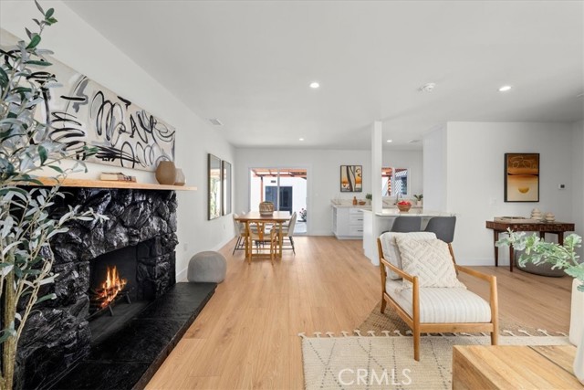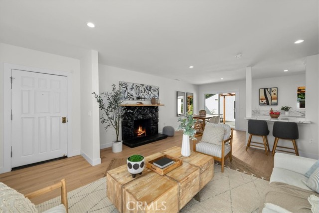 Welcome to this spacious and thoughtfully re-imagined 4-bedroom Bixby home, where no detail has been spared, With brand new windows throughout, an open concept flow, and wide plank vinyl flooring, this home offers both comfort and style. rnAs you enter, you’ll be greeted by the stunning black slate fireplace that adds a touch of elegance and warmth to the living space.rnThe kitchen has been tastefully remodeled with gold-flecked marbled Quartz countertops, and gold fixtures, providing a touch of luxury to your culinary endeavors. A new slider leads to a spacious backyard patio and a lush, grassy yard, perfect for outdoor gatherings and relaxation. The outdoor space holds immense potential, with a dedicated Meditation/Art Shed that opens the door to endless possibilities. Whether you’re seeking tranquility or a space for creative endeavors, this is your canvas to explore.rnFor those with extra vehicles or toys, you’ll appreciate the extra-large 2+ garage that used to be a pull-through, complete with a long driveway on both sides. This setup is ideal for someone who needs ample parking space or wants to securely house their recreational vehicles and equipment. rnThe master suite is your private oasis, featuring a walk-in closet, double sink, and a rejuvenating rain shower. The convenience of stackable laundry hookups inside ensures your daily chores are a breeze.rnDon’t miss this opportunity to make this beautifully reimagined Bixby residence your own. Experience the perfect blend of comfort, style, and practicality in a prime residential setting.